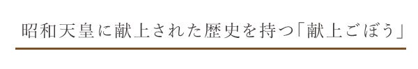 東寺献上ごぼうは、昭和天皇即位(昭和3年)後最初の大嘗祭が滋賀県で行われ、当時石部町東寺の特産のごぼうを献上しました。当時の献上ごぼうの碑は、私有地の一角でひっそりと佇んでいます。