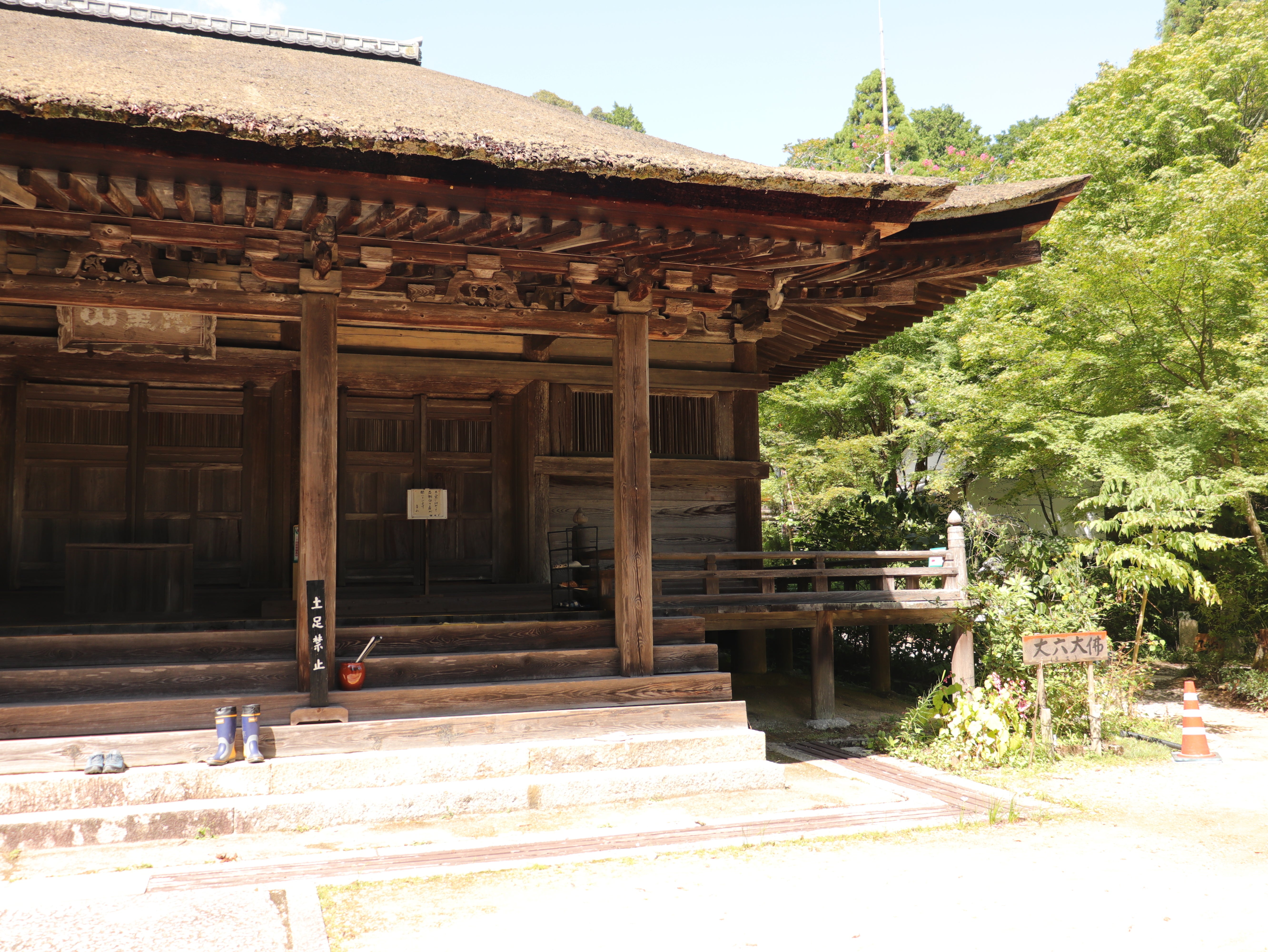 長壽寺は、奈良時代に創建された1200年以上の歴史を持つ天台宗の寺院です。平安時代に再建された檜皮葺の本堂は国宝に指定され、湖南三山の中では最も古い歴史を持ちます。ご本尊は子安地蔵菩薩。子宝・安産・長寿にご利益があります。