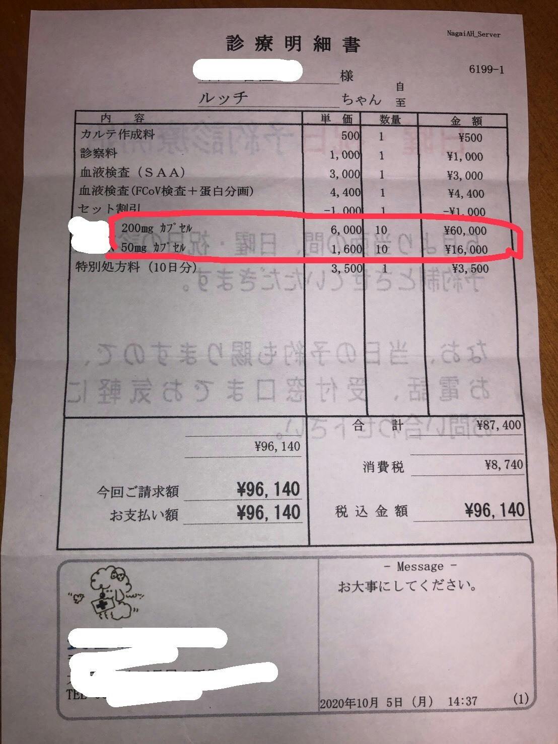 これらは全てFIPの治療にかかる前の費用です。《71,970円》