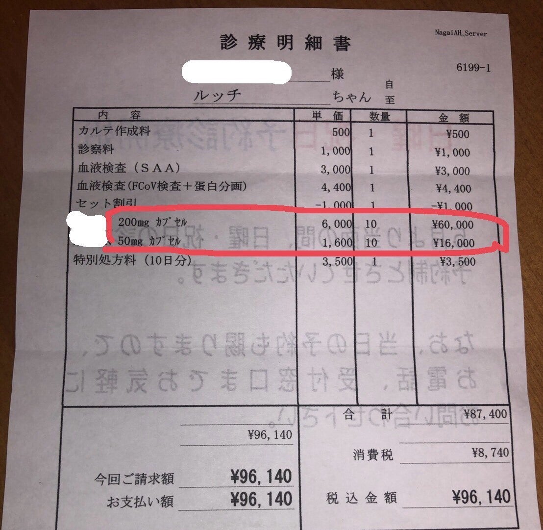 唯一FIPに効果があるとされている日本未認可のサプリメントは非常に高価です。