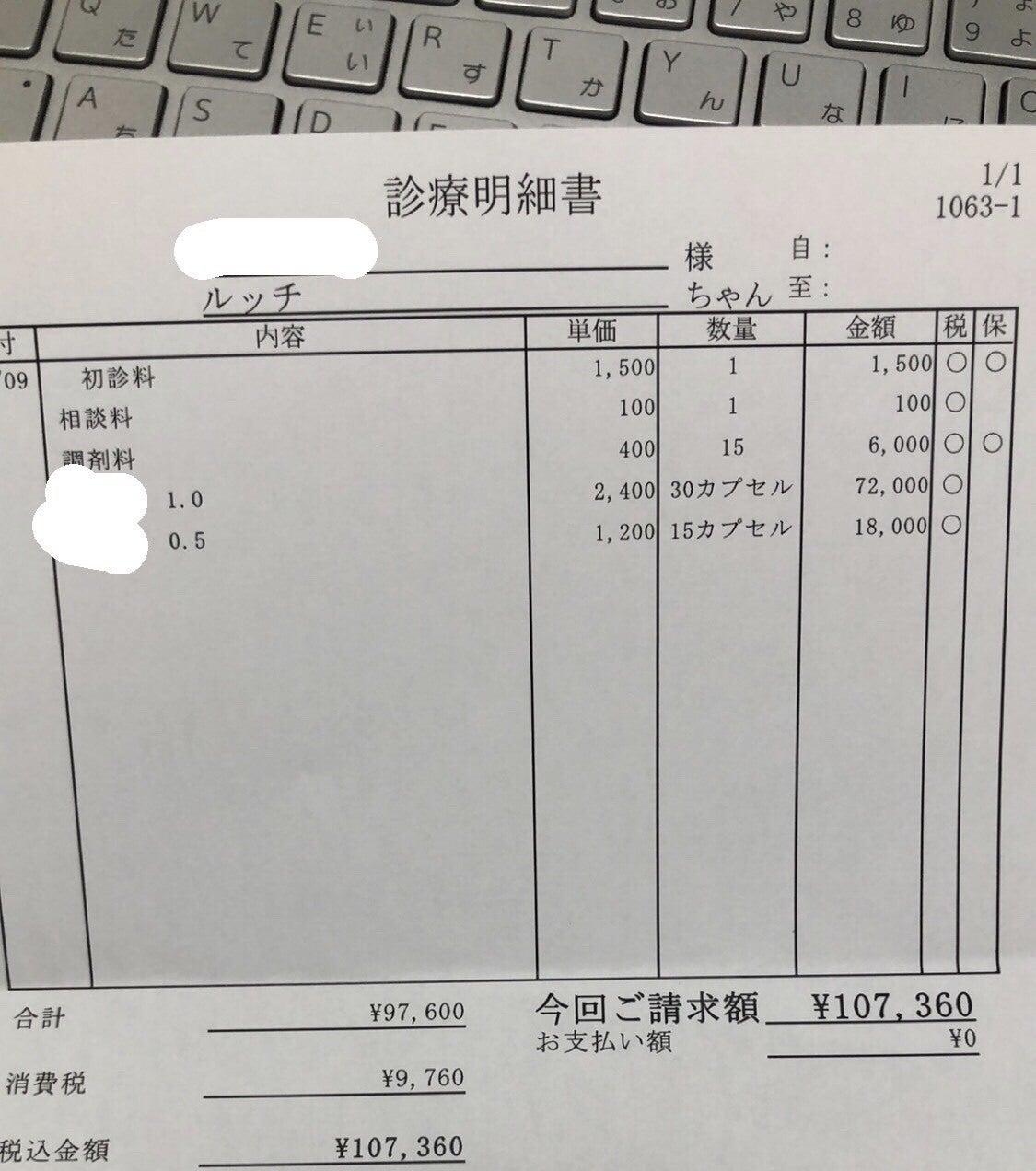 こちらで《15日分》 お薬代+処方料のみで【96,000円】
