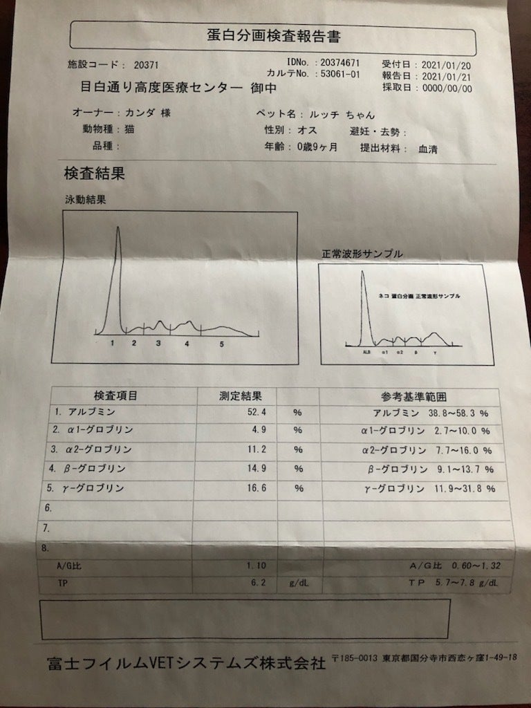 投薬終了前の検査の時のA/G比は【1.04】でしたが、今回は【1.10】でした!