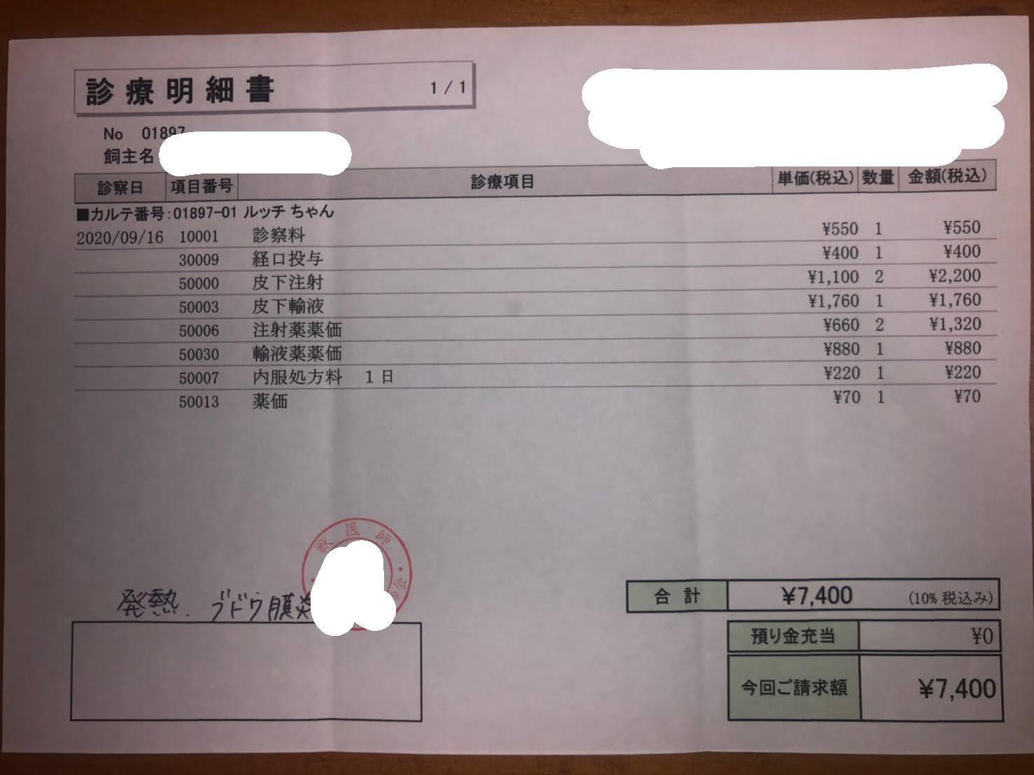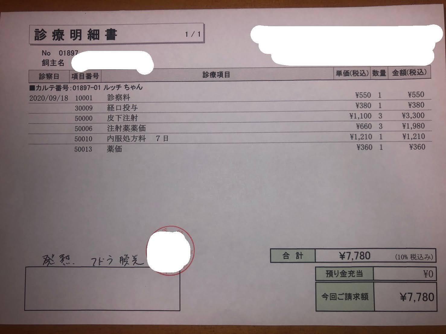 これらは全てFIPの治療にかかる前の費用です。《71,970円》