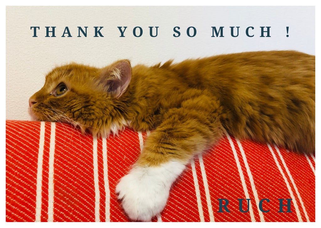 ご協力くださった方へ感謝の気持ちを込めて、メッセージ・写真・ルーちゃんのオリジナルアイテムをお送りいたします。