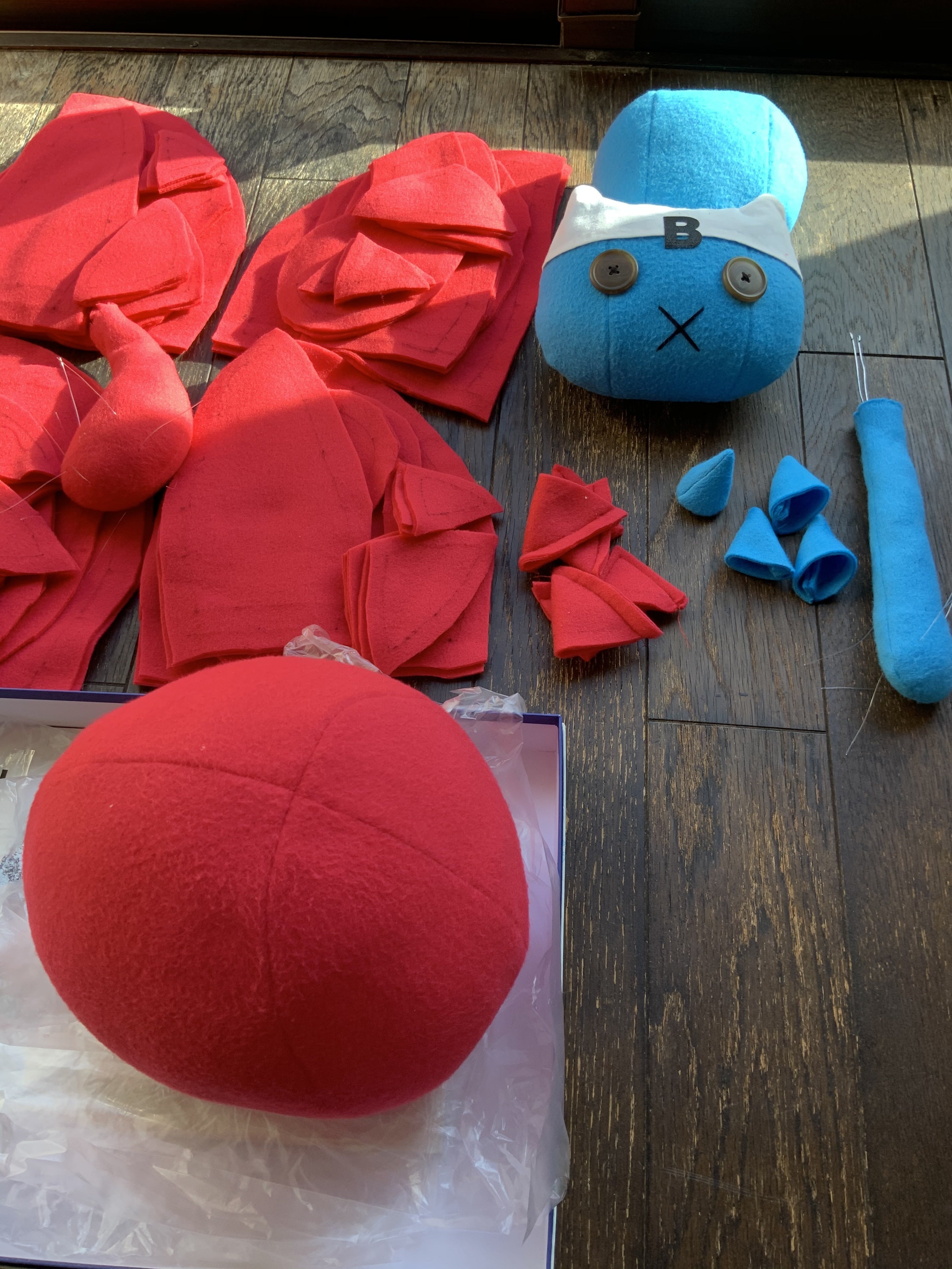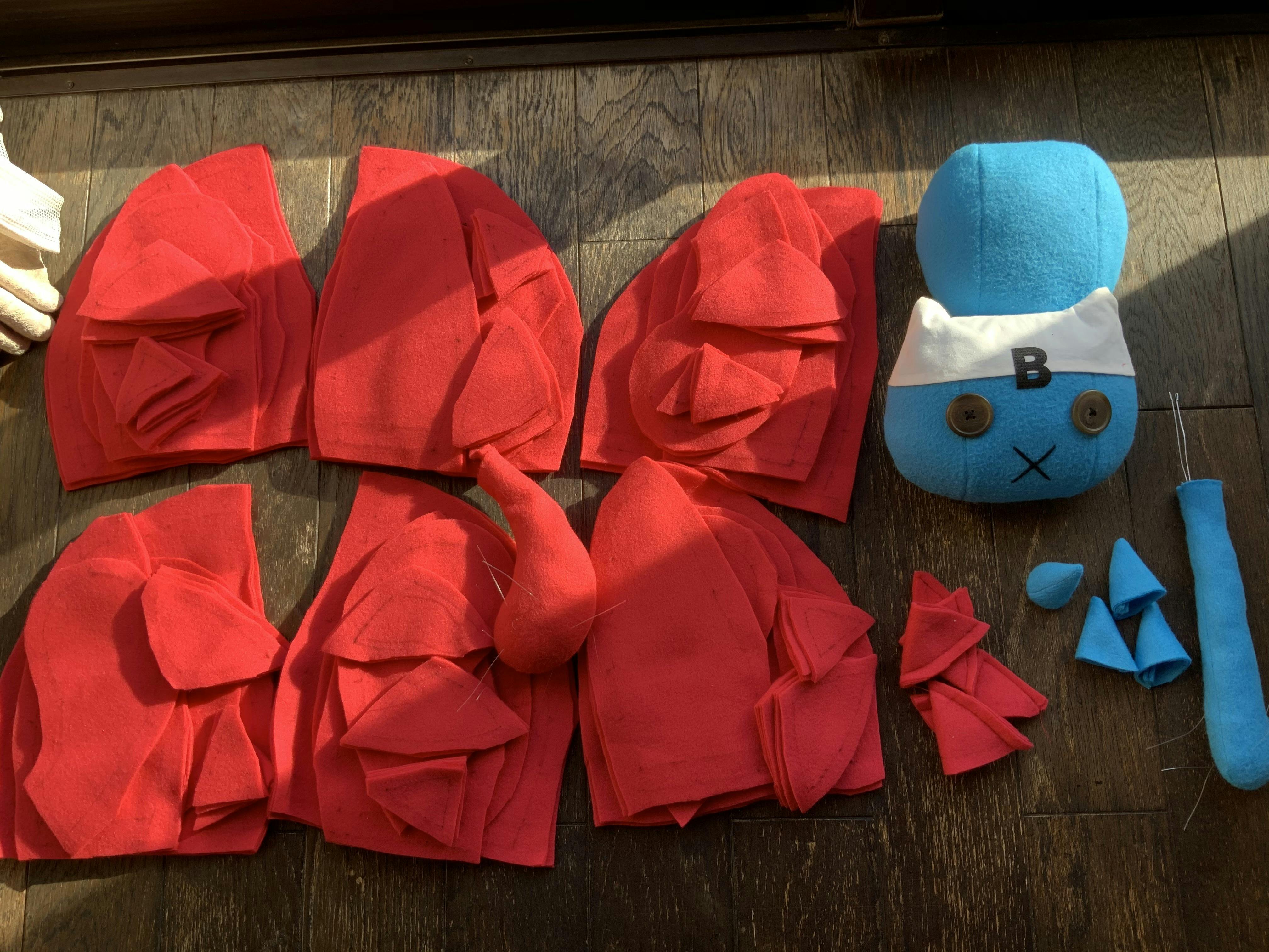 ただいま、リターン品の前鬼・後鬼ぬいぐるみを制作中やで〜☆
