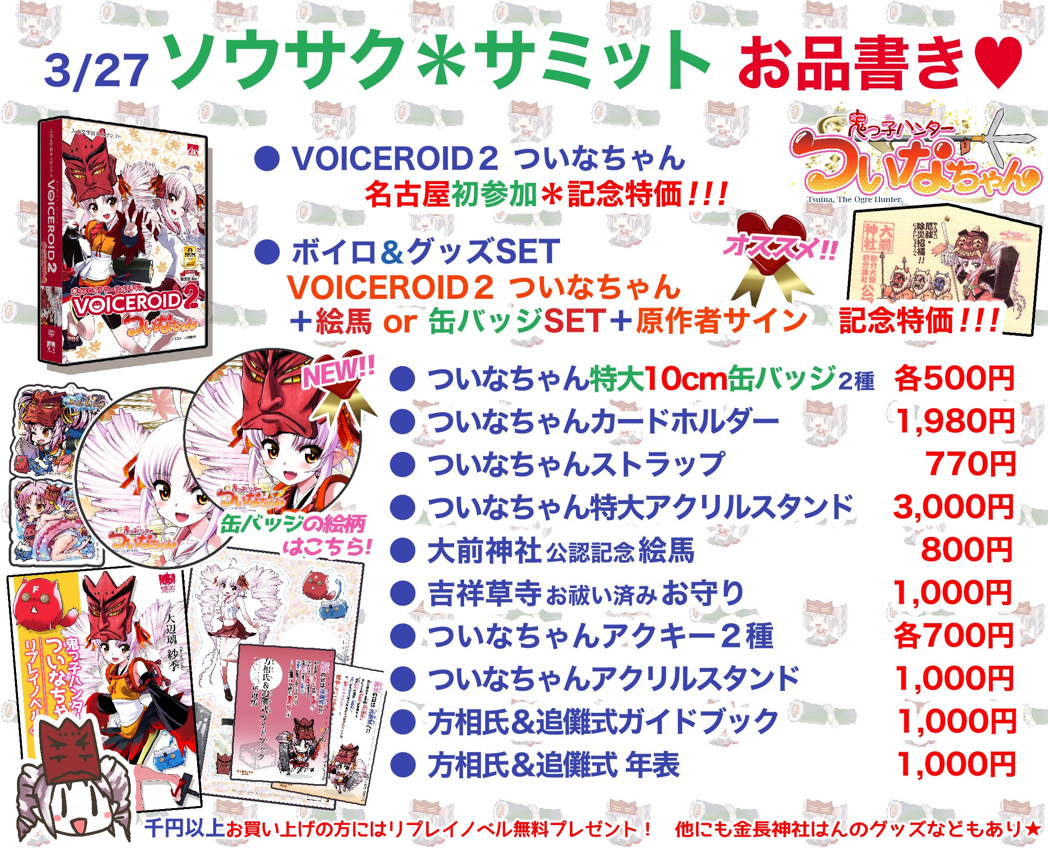 【ボイロ物販】3/27 ソウサミ☆お品書きやで!【新グッズ・特大缶バッジ】