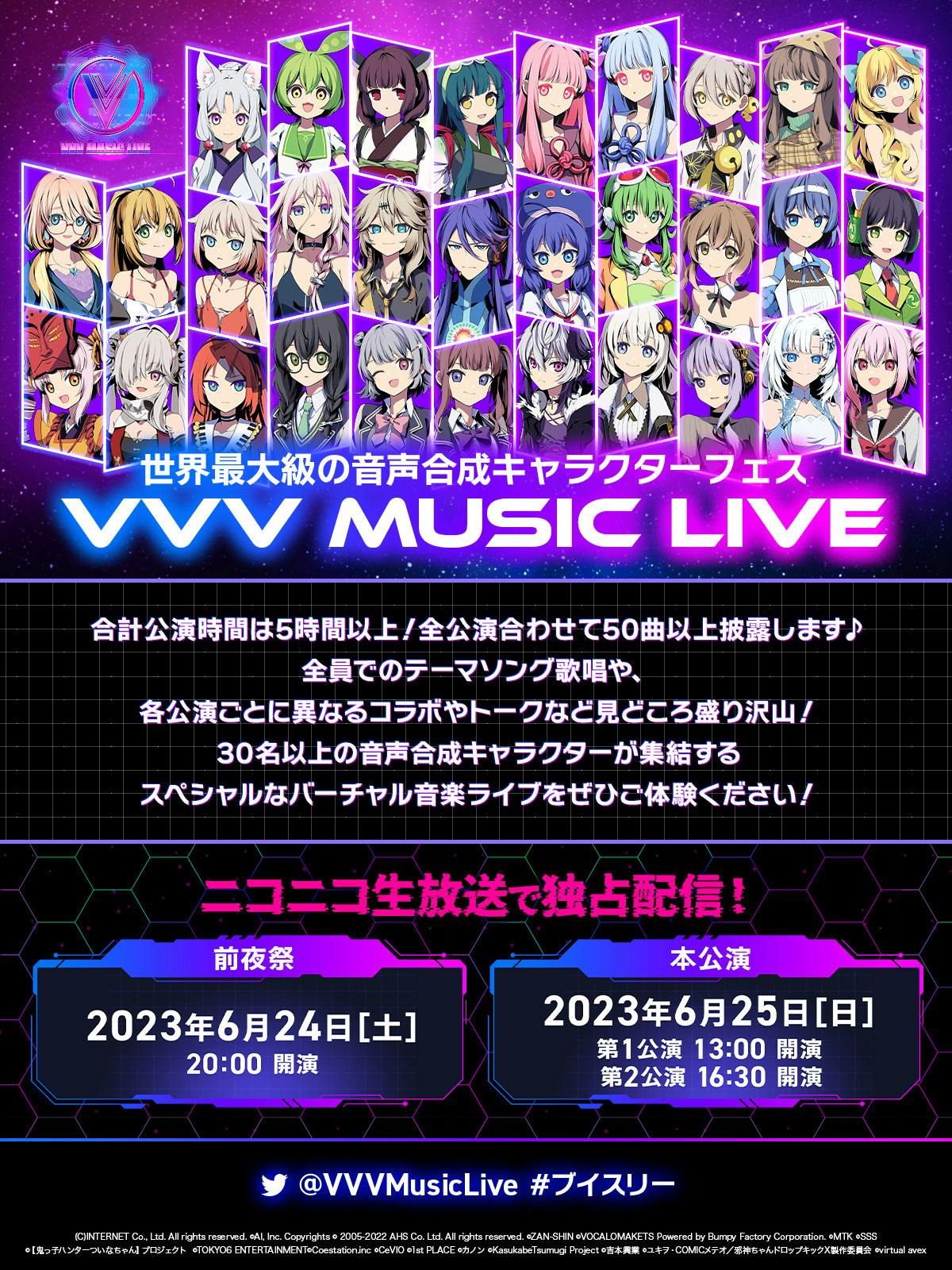 世界最大級の音声合成キャラクターフェス【VVV MUSIC LIVE】(通称:ブイスリー)に、