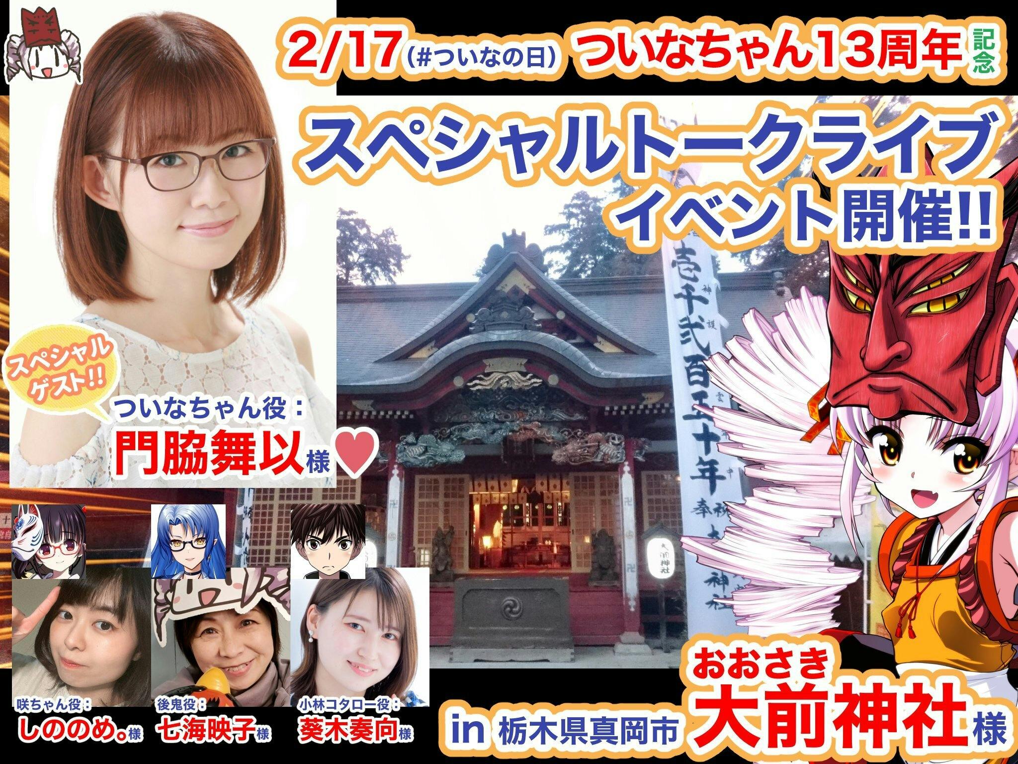 来たる2月17日(土)、門脇舞以はん達ついなちゃんプロジェクトの声優はんをお招して、