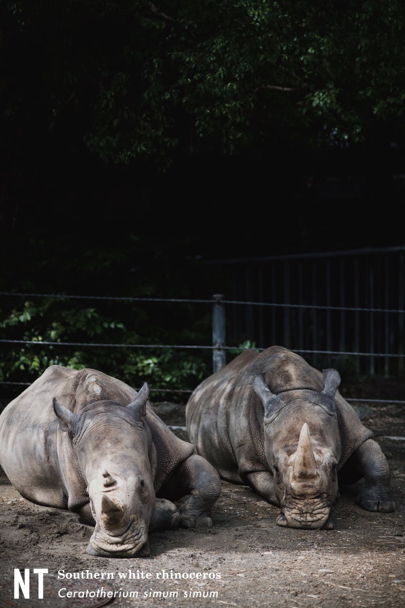 のんほいパークのシロサイは3頭仲良く寝転がっていたりして、基本的に単独行動のサイにあって仲良くしている姿はとてもホッコリします。