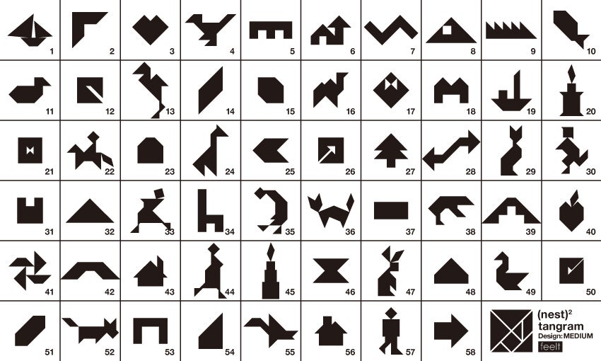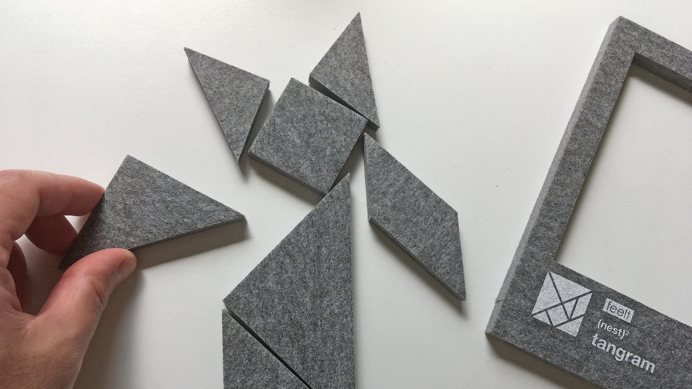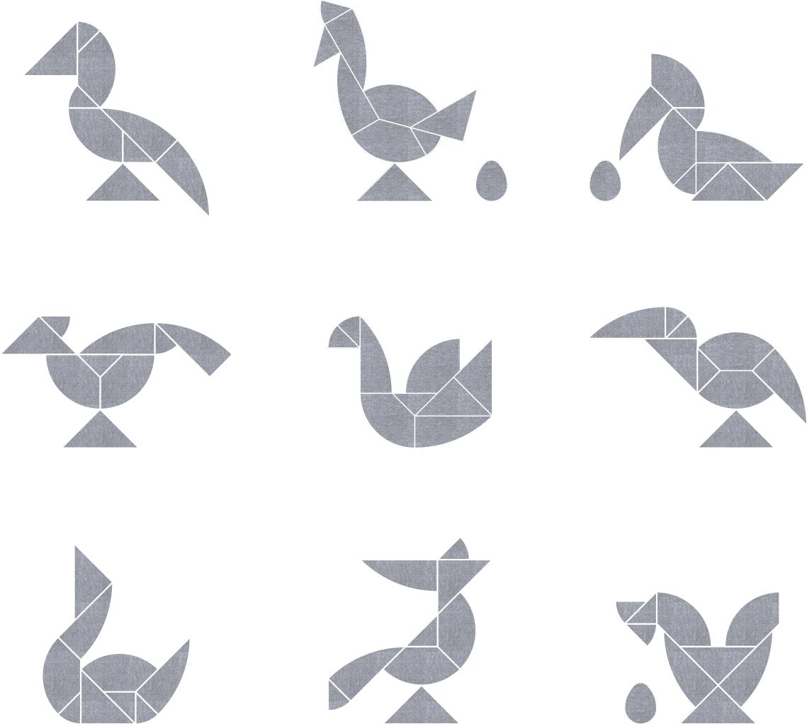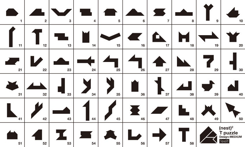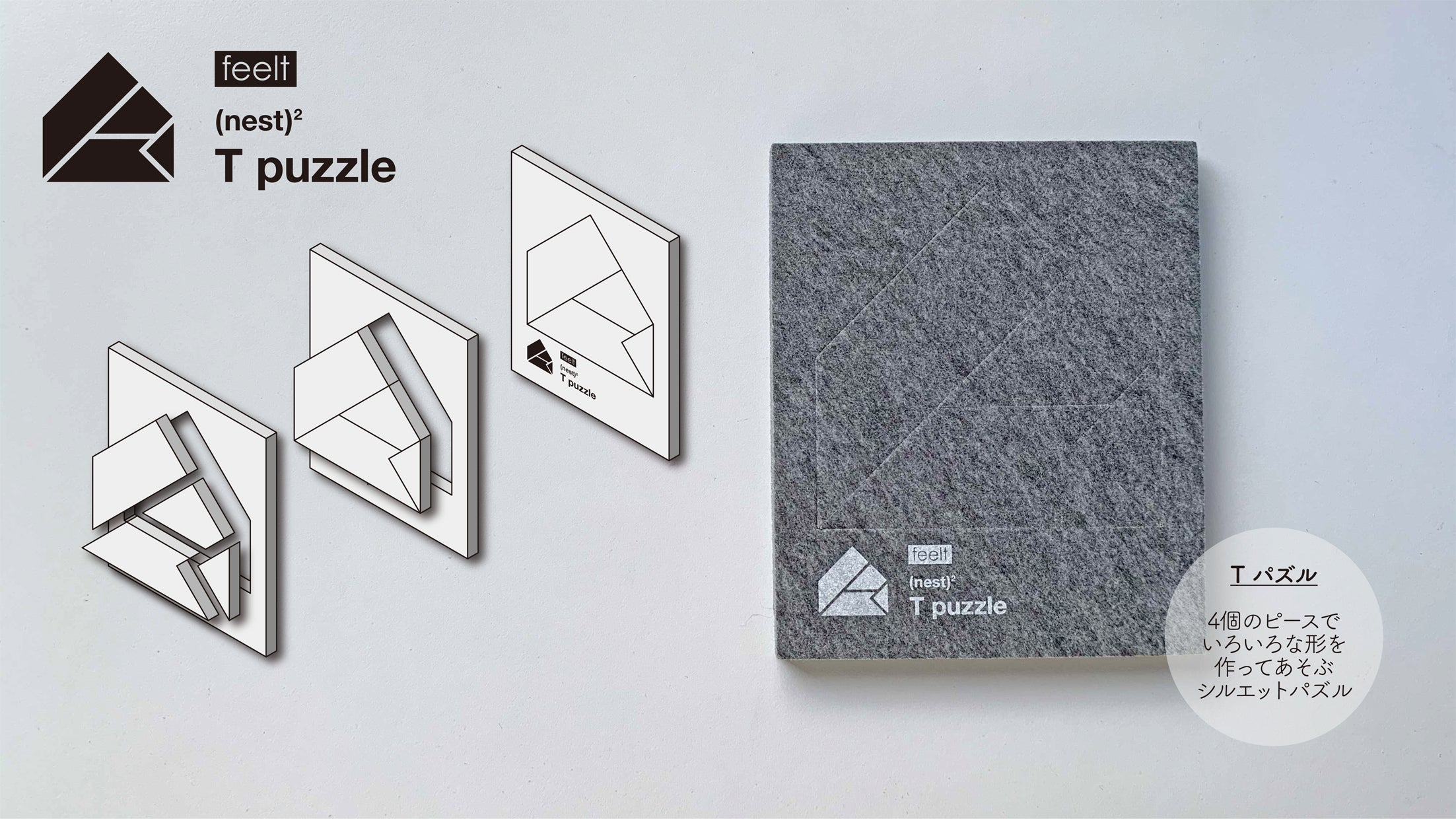 (nest)2は硬質フェルトでできた、3種類(タングラム・Tパズル・エッグ パズル)のシルエットパズルです。ひとりでも、ふたりでも、みんなでも楽しく遊べます。使用しないときは、150 x 180mmの1枚の板としてコンパクトに収納できます。
