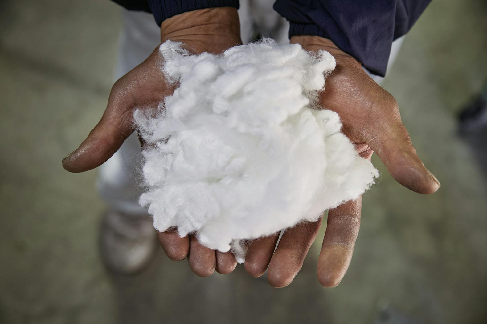 (nest)2は、硬質フェルトというオリジナルの素材を使用しています。硬質フェルトは、フェルトそのままの素材感を保ちつつ、触ると木のように硬いとてもユニークな素材です。芯材がないのでぶつかっても安全で、ひきずってもテーブルなどに傷がつきにくいのが特徴です。硬質フェルトの原料になるポリエステルは、PETボトル等の再生繊維を混合しています。