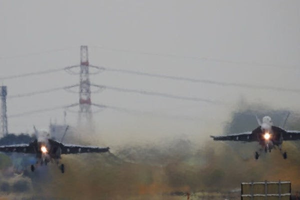 米海軍と航空自衛隊が共同利用するこの飛行場は住宅と隣接し、