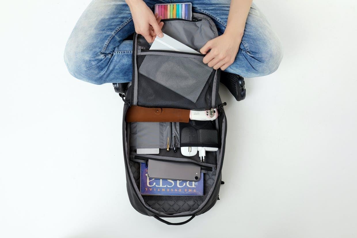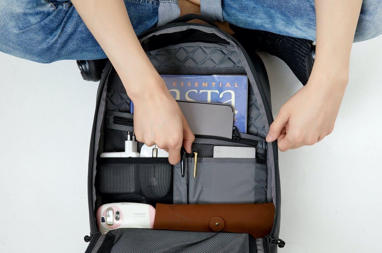 普段持ち歩く、PCやタブレットの充電器、ノート類、筆記用具など、どこに何を収納したかが一目で把握できます。