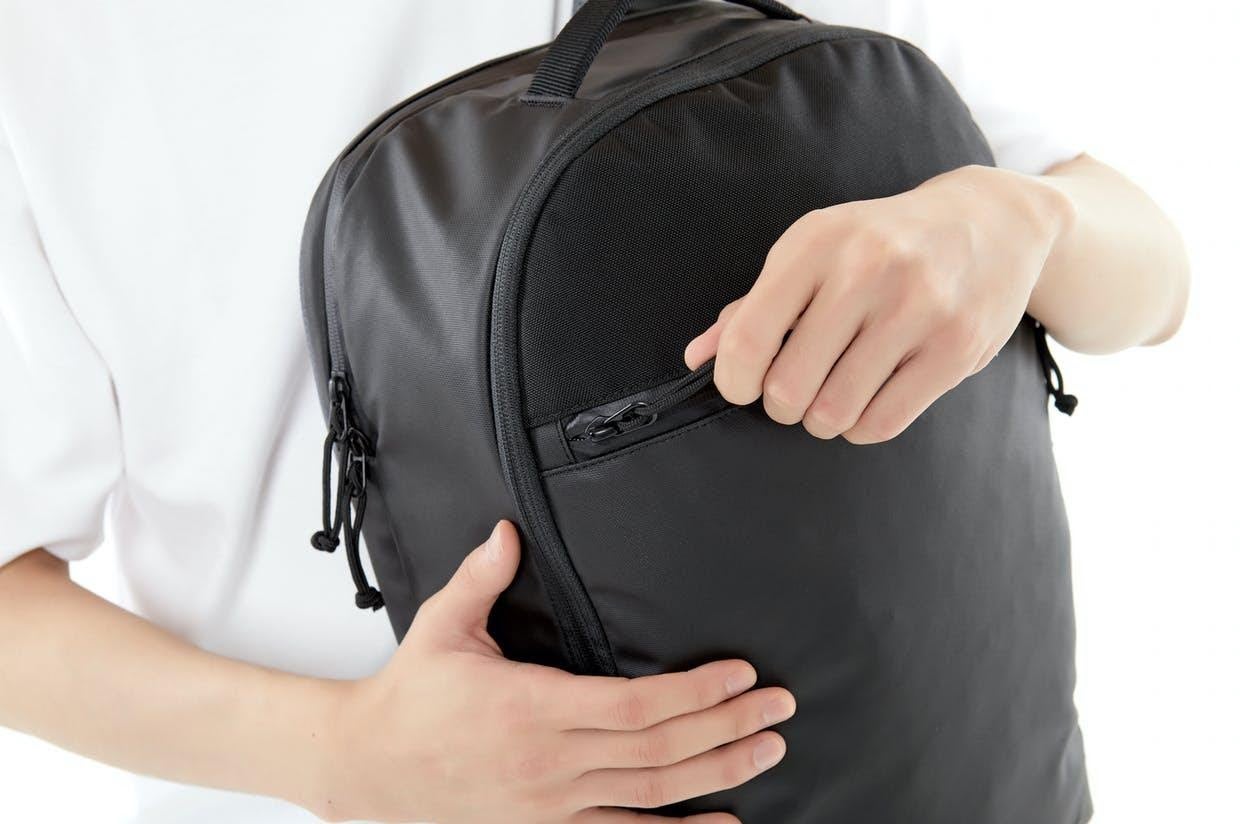 バックパック正面にはYKK製止水ジッパーを採用。