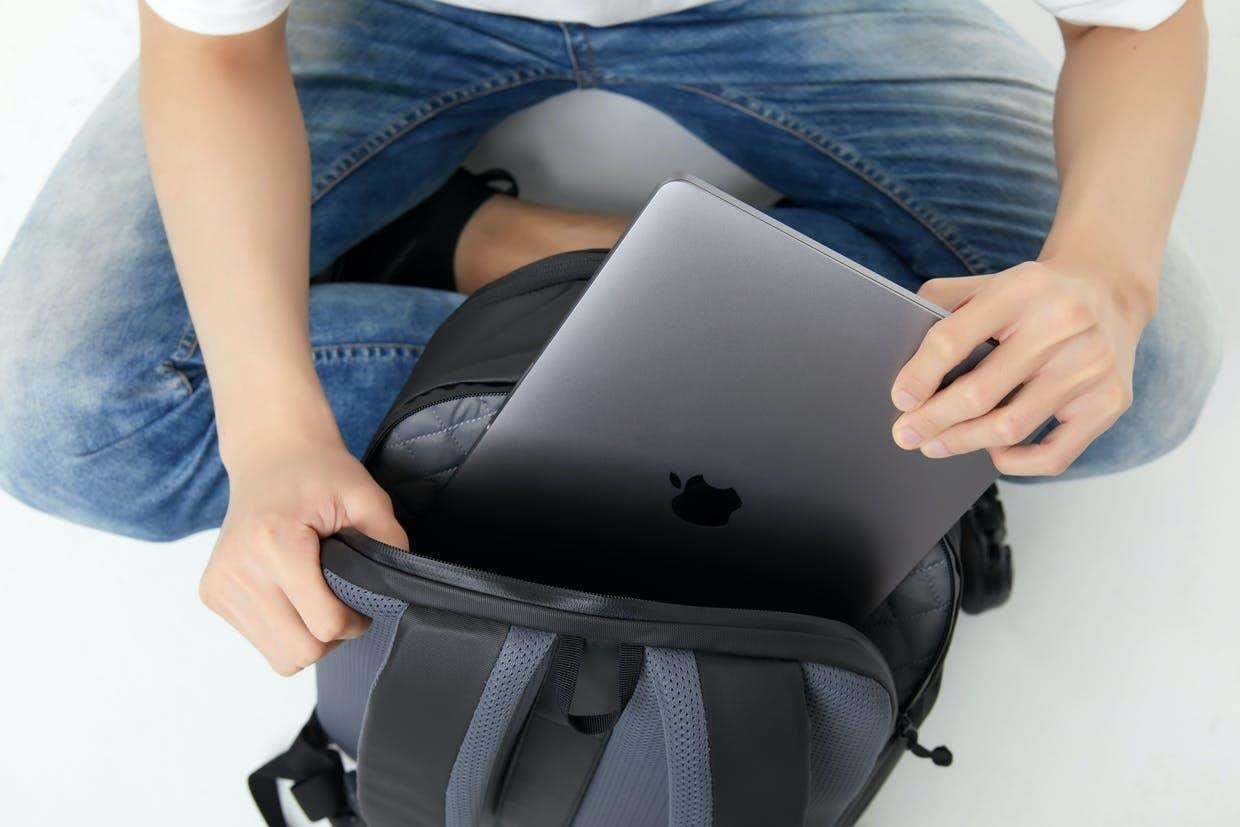 MacBook 13インチを収納する様子 (LACONIC BACKPACK 20L)