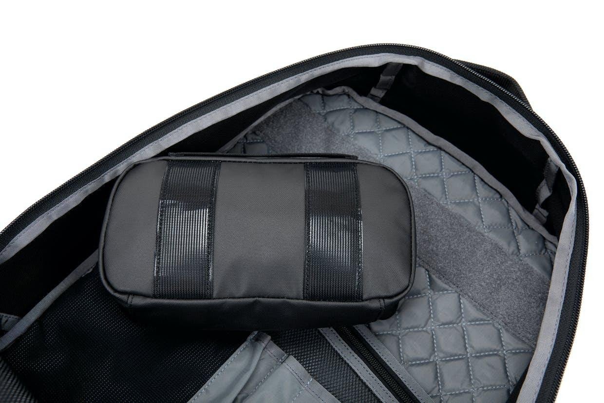 メインコンパートメントの上部にはマジックテープが配備され、付属のクイックアクセスポーチをアタッチ可能です。
