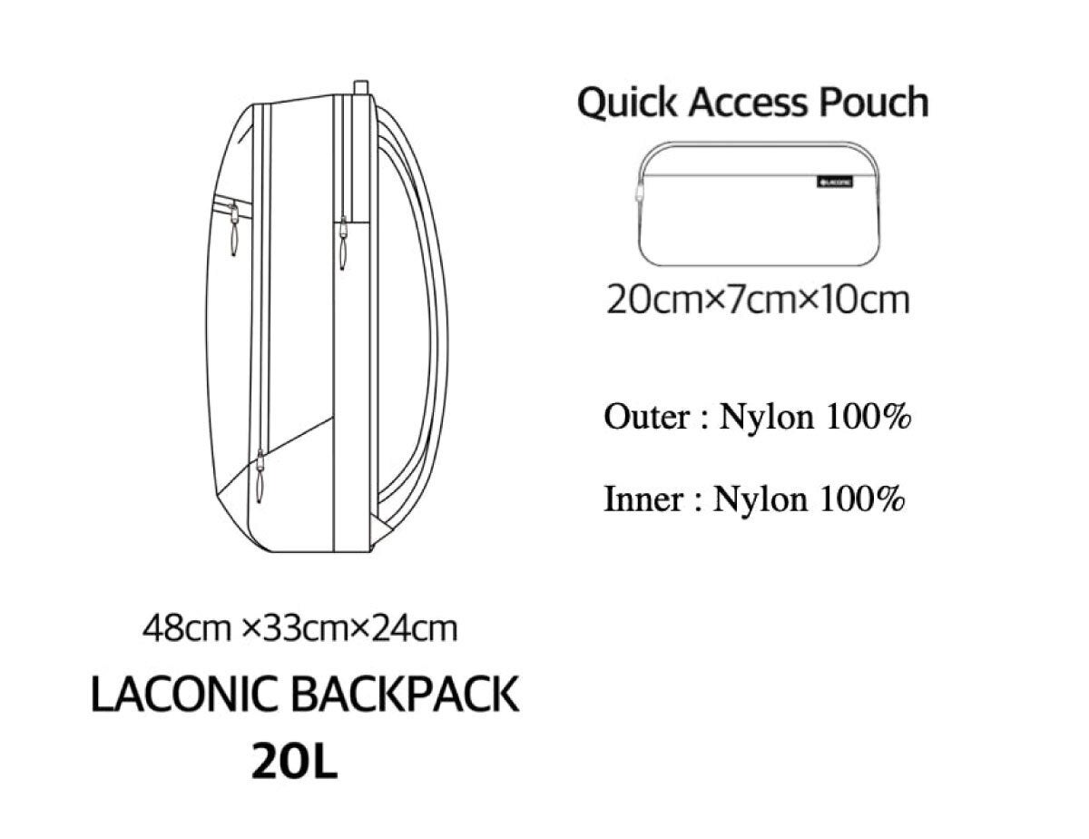 LACONIC BACKPACK(ラコニックバックパック)シリーズは、韓国MK companyが手掛けるデイリーに使える機能的なバッグラインです。ヘビーデューティーナイロン840Dカーボネイト生地とアウトドアトリムを使用しています。各コンパートメントへのアクセスは便利で簡単。あなたのギアを十分に保護し、かさばることもなく、スタイリッシュにお使いいただけます。
