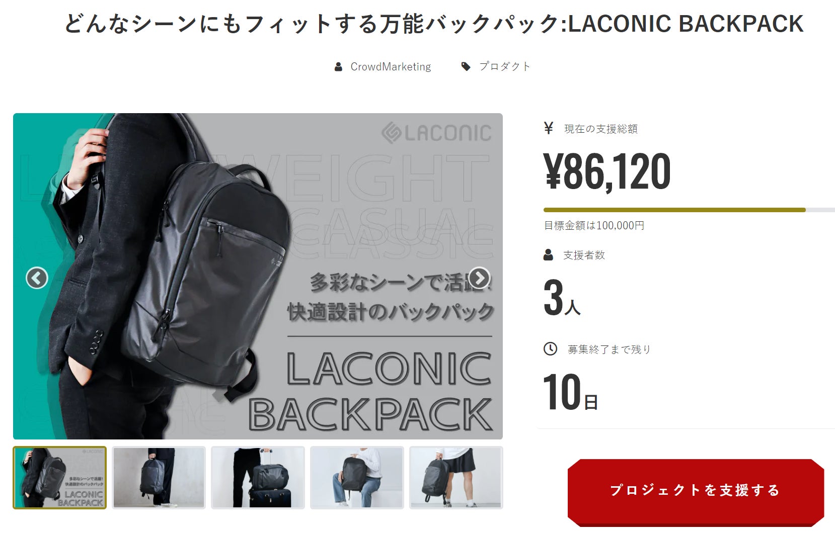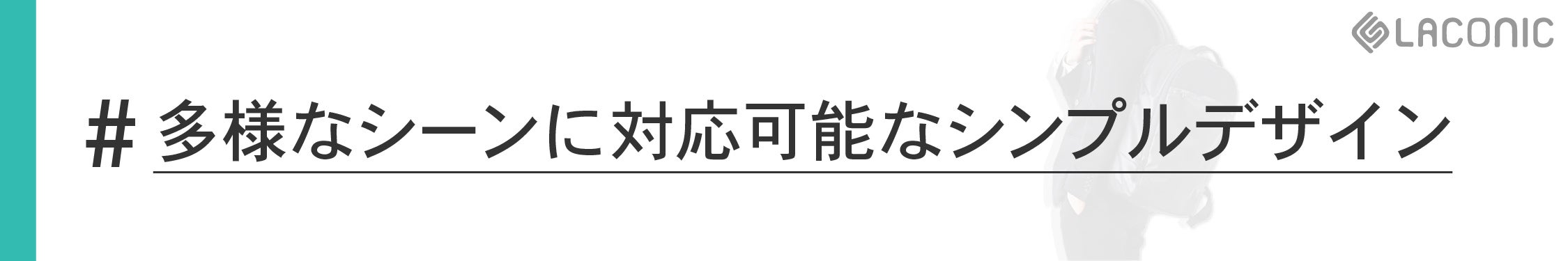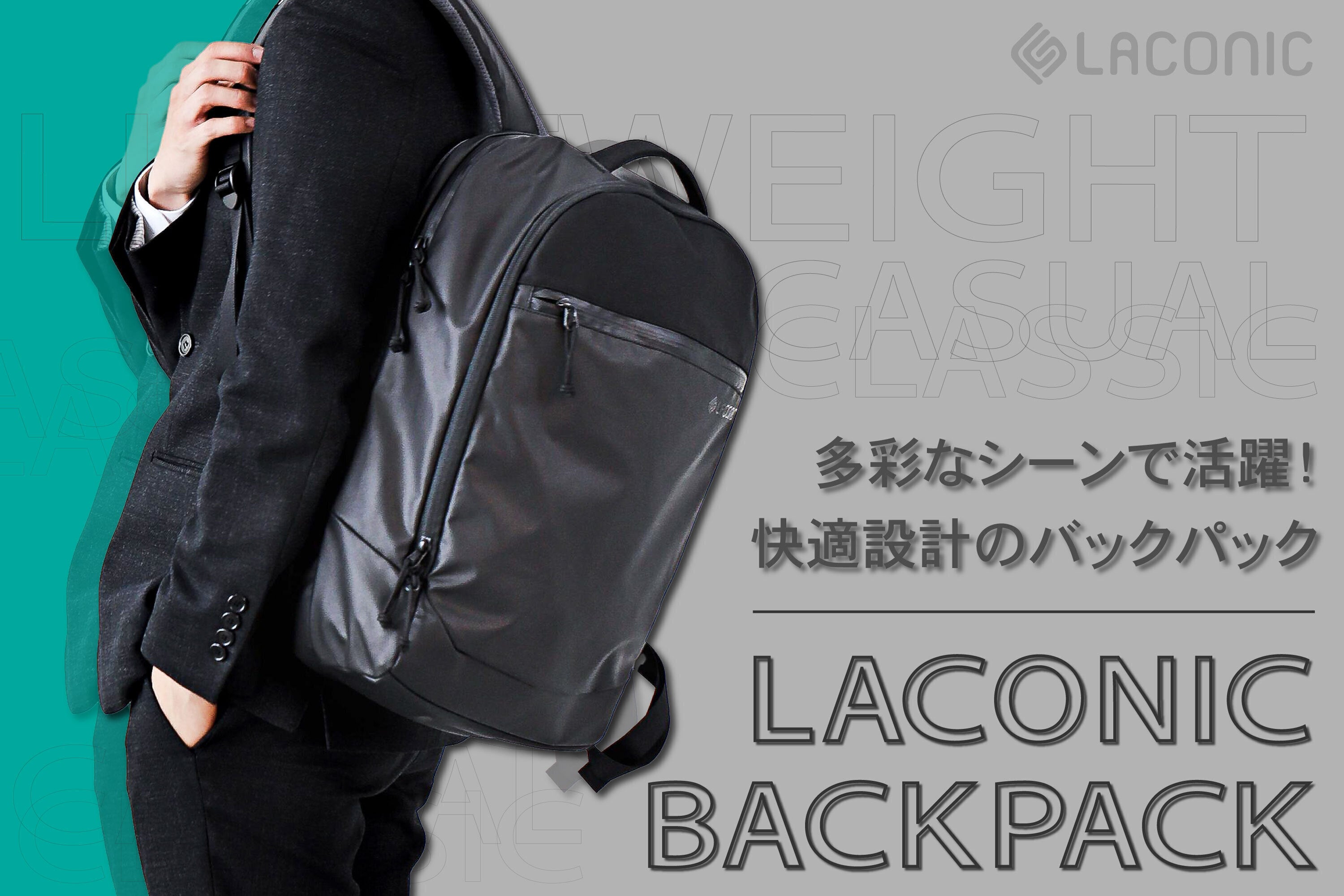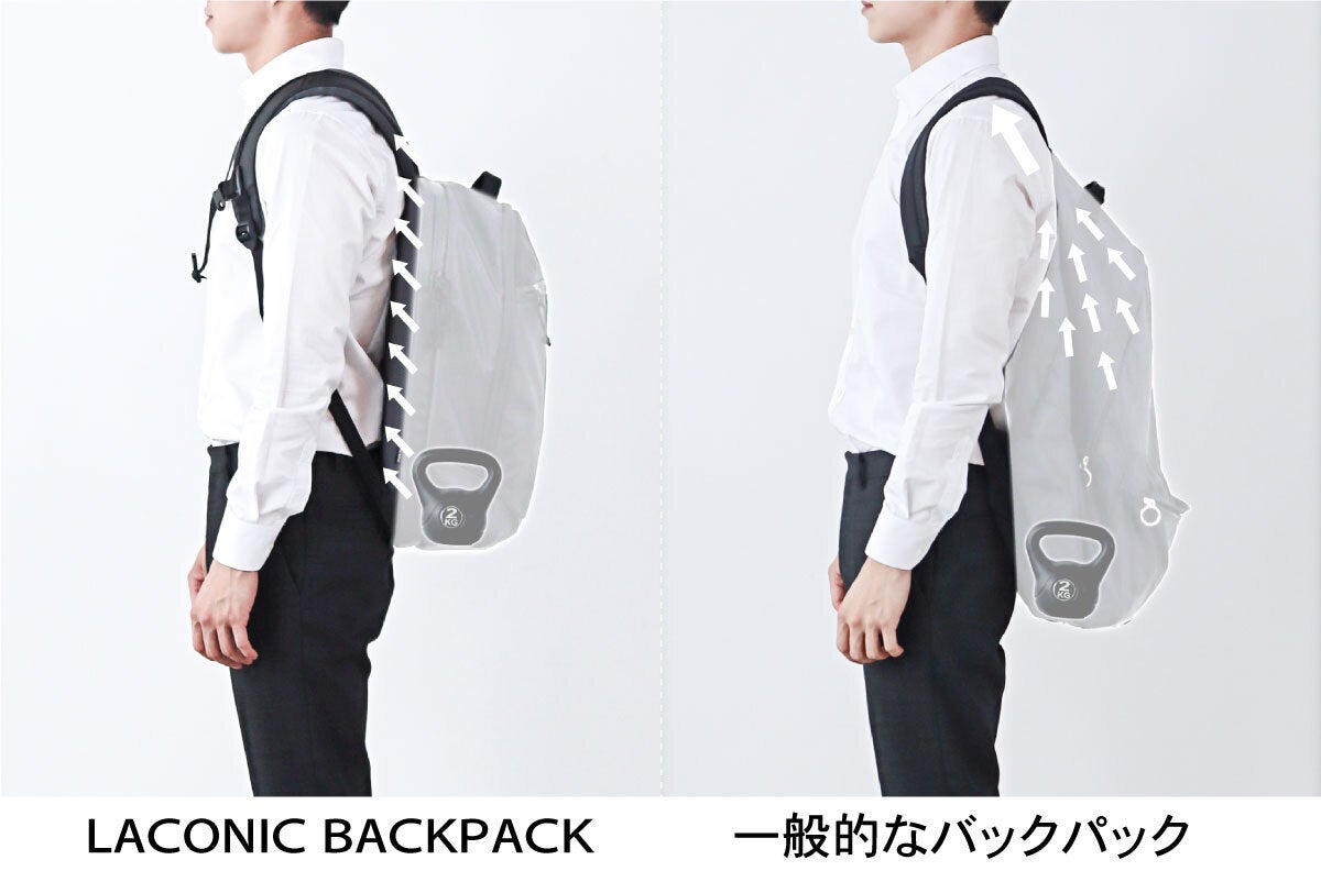 LACONIC BACKPACKは、①通勤・通学から、ちょっとした旅行まで多彩なシーンで使えて、②利用していて肩や背中の不快感がないように設計された、万能快適バックパックです。