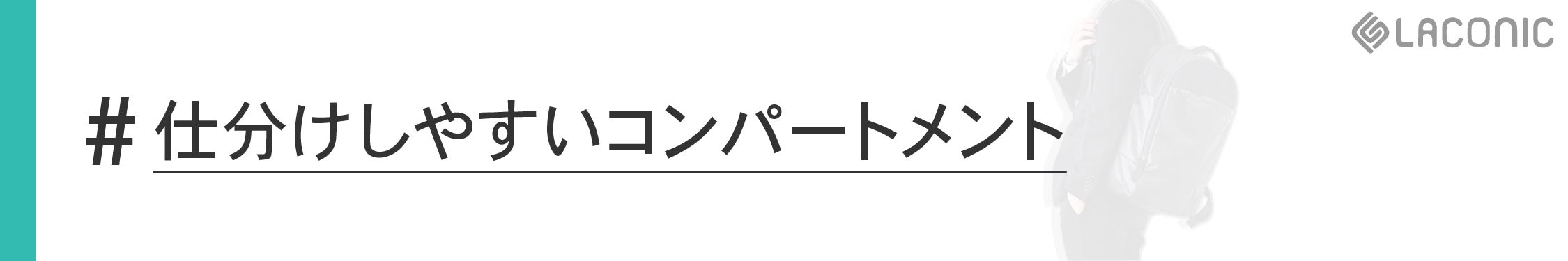 LACONIC BACKPACKのコンパートメント(収納スペース)は3室構造で、使い分けが容易です!