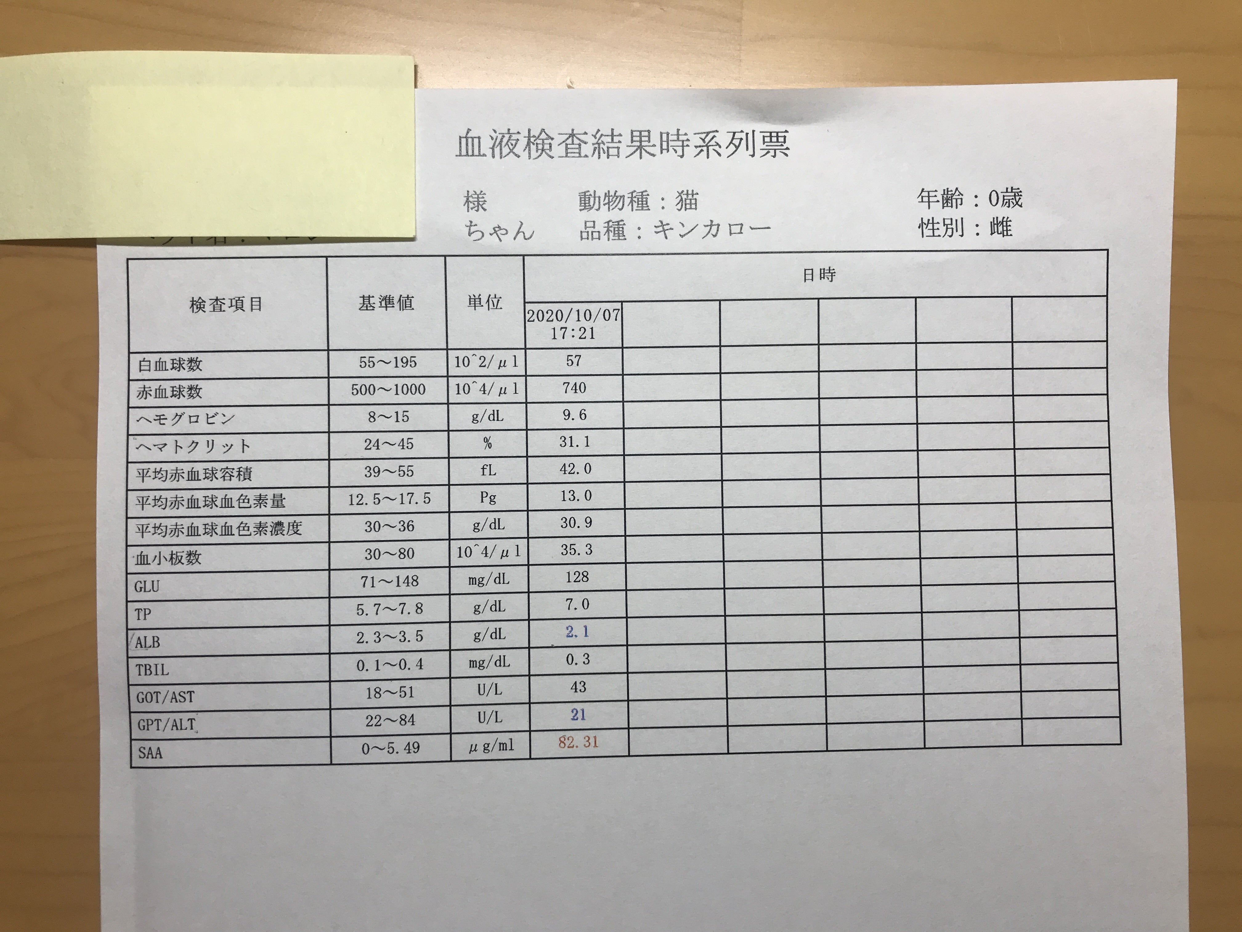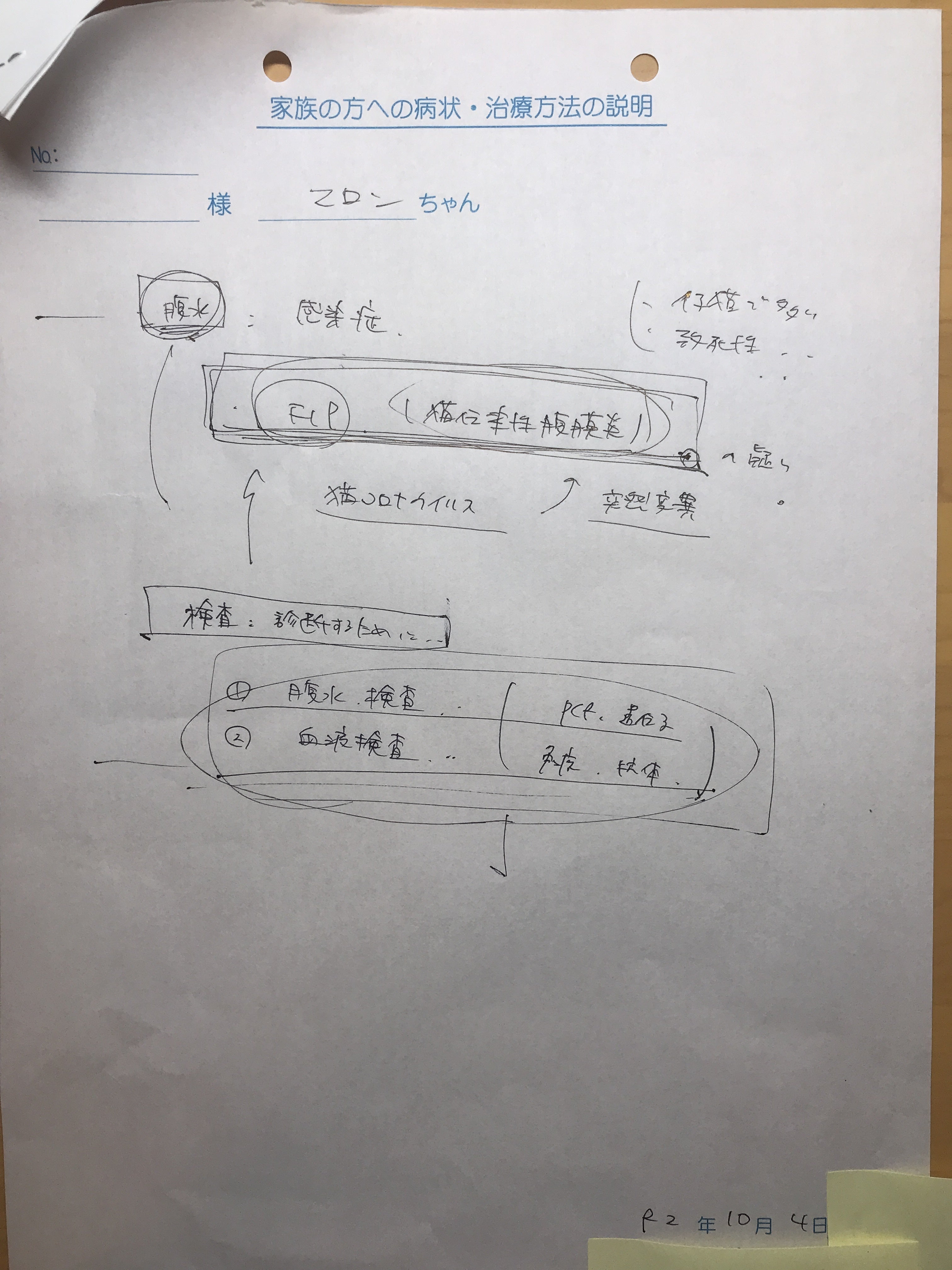 2020年10月7日 自宅から片道3時間の動物病院にて、初期のFIP(ウエットタイプ)と診断。