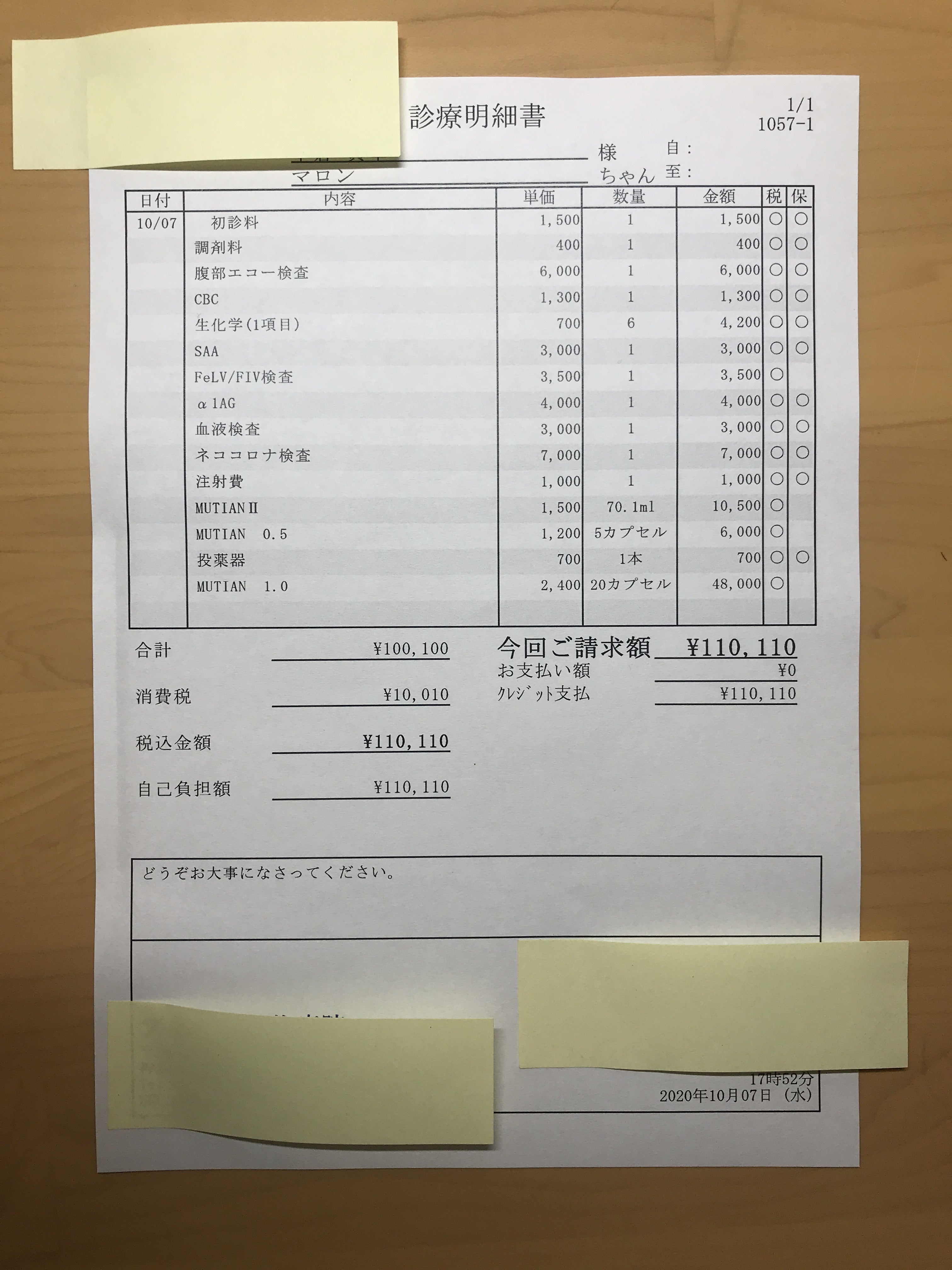 ・MUTIANⅡ注射 10,500円×1回 =10,500円