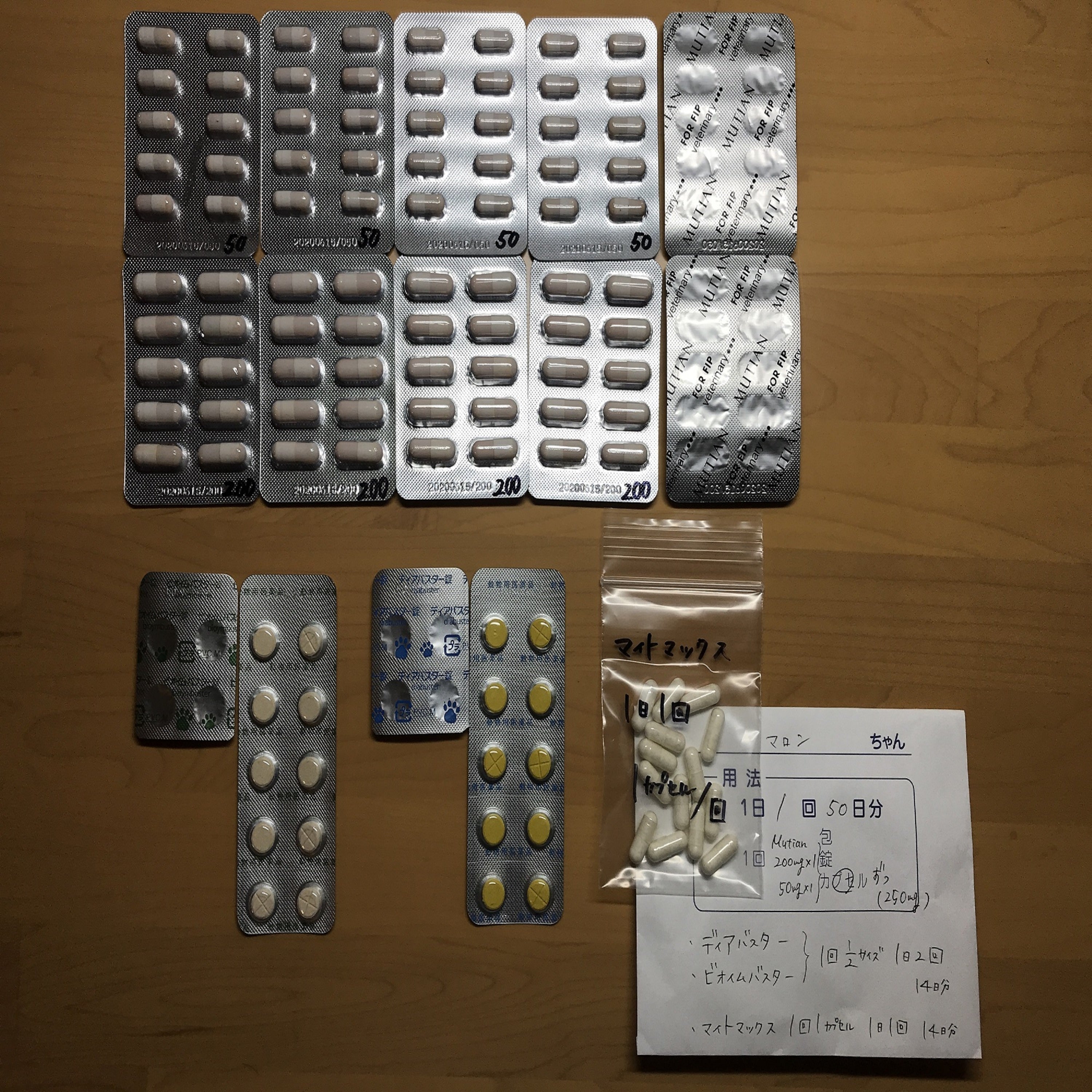 11月4日(水) 1カ月の検診へ行ってきました。まずは前回の検査結果の報告 ←FIP陽性結果先生からは猫背を触りながら、体重が増えていない事を御指摘頂きました(何でも痩せていると再発の可能性が高くなるらしいのです)。そして、軟便の相談をしたら「便を持ってきました?」と… 確かに言葉だけでは先生も困ってしまいますね。マロンさん、配慮が足らない家族で申し訳御座いません。次回の検査は12月中旬との事。50日分の錠剤を頂きました。