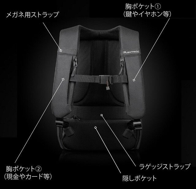 メインポケットとは別に貴重品を入れるための背面ポケット、また背中に当たる部分にも隠しポケットを配しており、日常利用だけでなくパスポートなど貴重品が不安な海外旅行にも対応可能です!