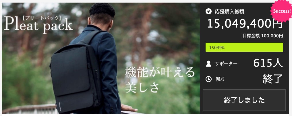 第1弾販売を行った国内クラウドファンディングでも、1500万円を超えるご支援をいただき、2020年最も支援を集めたバックパックとなりました。