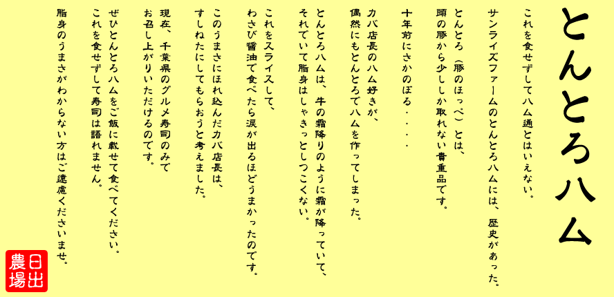 この豚の部位は、まるでマグロの大トロのようだ。と思って「とんとろ」と名づけました。