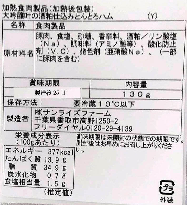 ■大吟醸酒・叶の酒粕仕込み「とんとろハム」