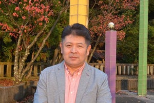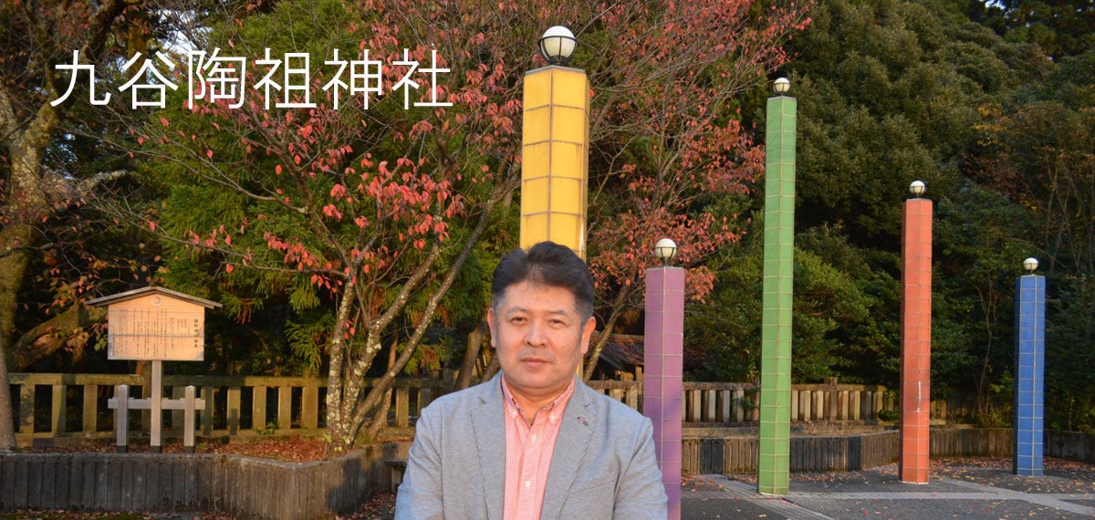 ▲本多商店 本多陽一 石川県能美市佐野町にある九谷焼五彩モニュメント前にて