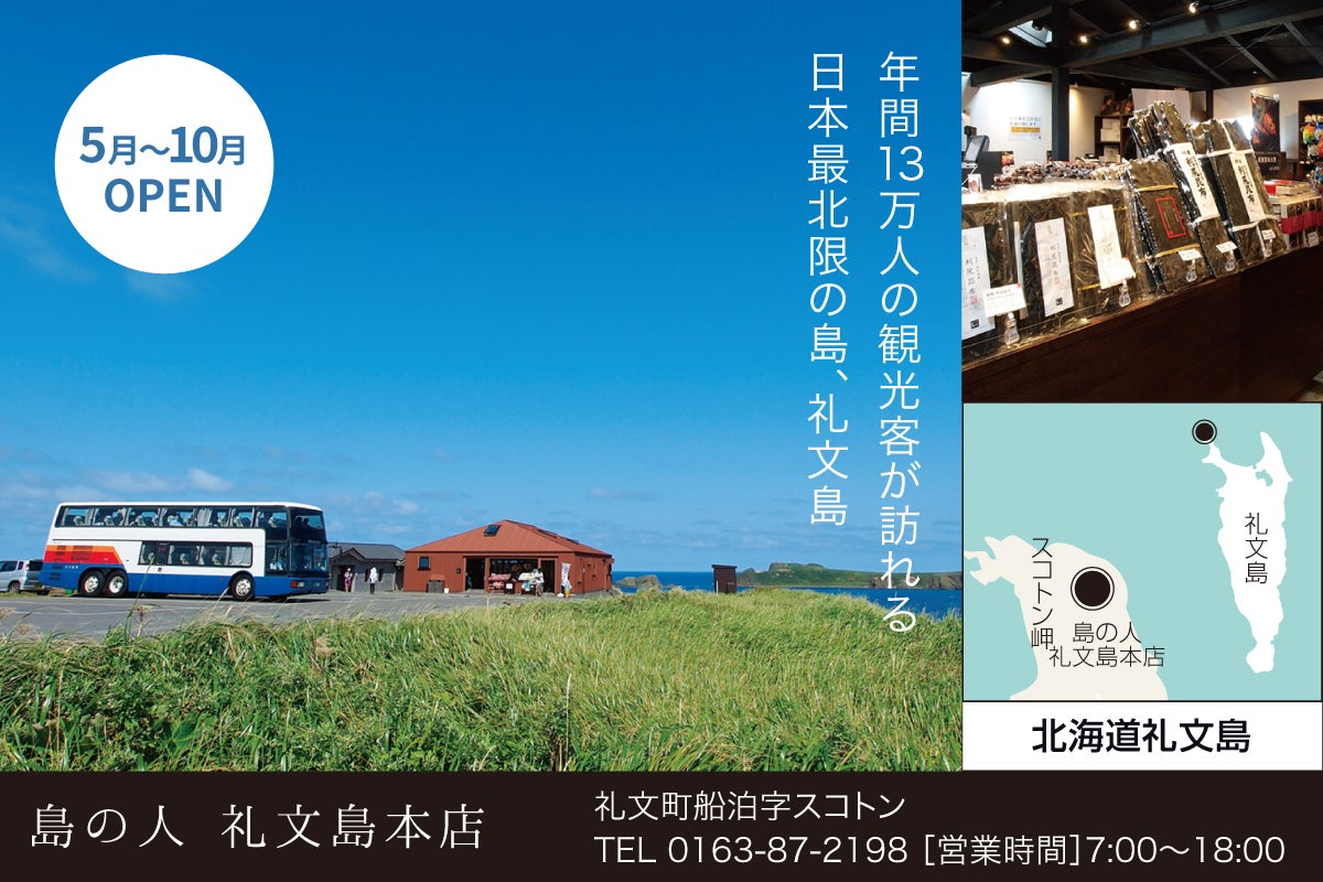 当店は日本最北の離島 北海道 礼文島の最北端に位置するスコトン岬に本店を構える【島の人】と申します。
