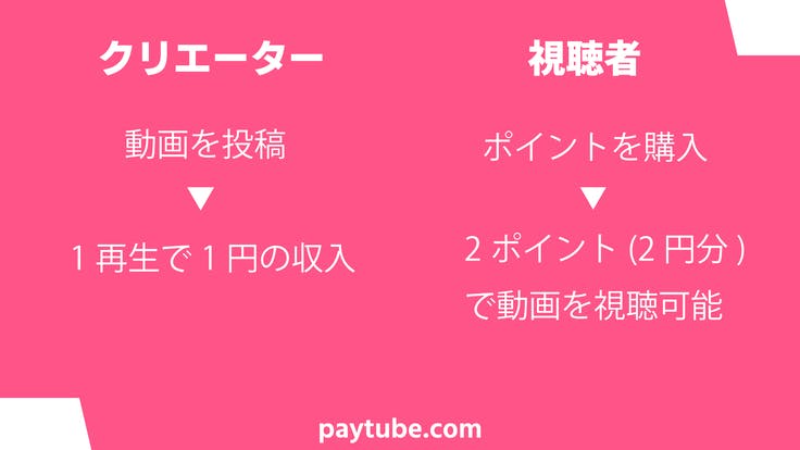 視聴者は1回視聴する毎に、2ポイント(2円)を支払う。