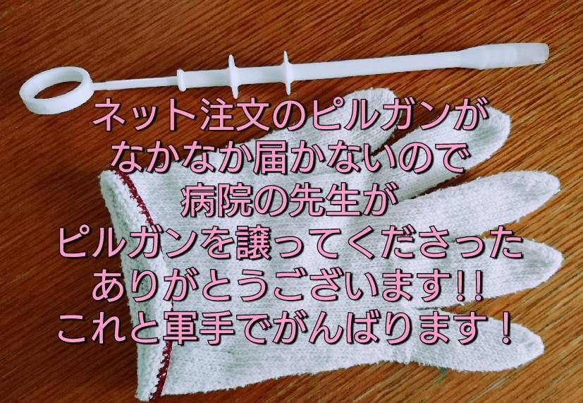 投薬が難しいと相談するとピルガンを譲ってくださった。感謝!