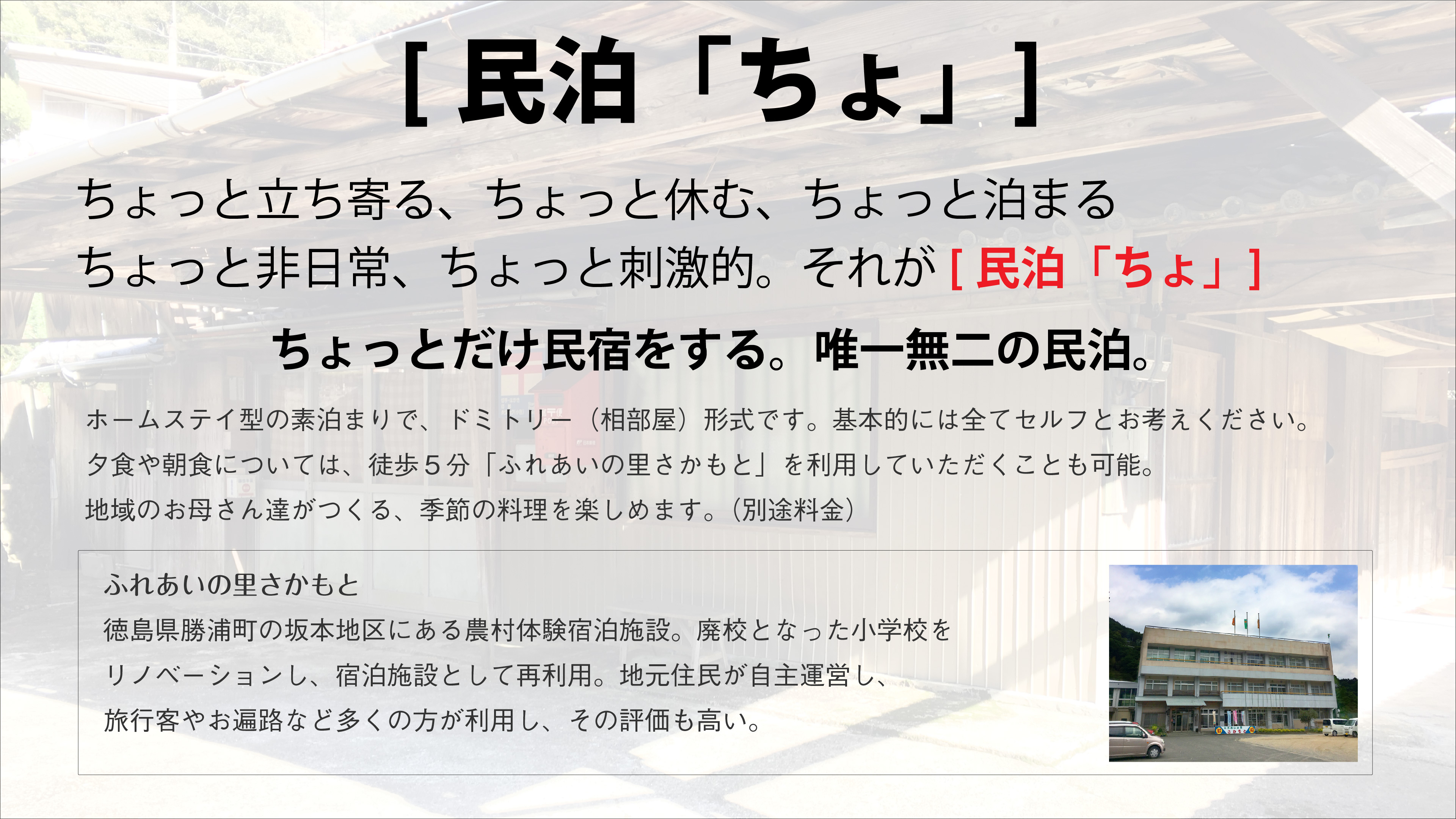 ちょっとだけ都会を離れて仕事をしながら宿泊するもよし、交流目的で宿泊するもよし。学園祭の打ち上げに使うのもよし。