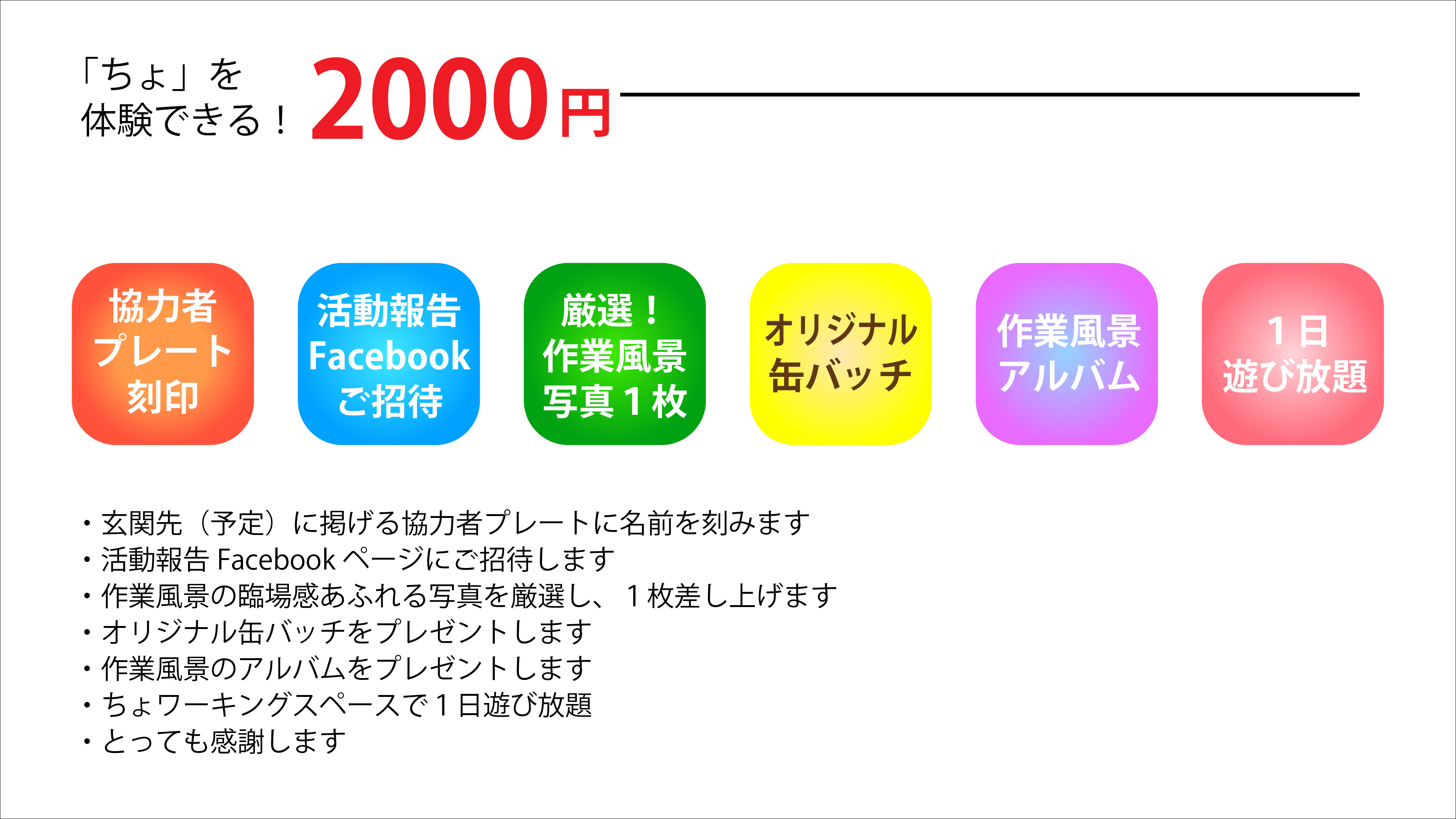 1000円 + [ちょワーキングスペース]で1日遊べる権利が付きます。