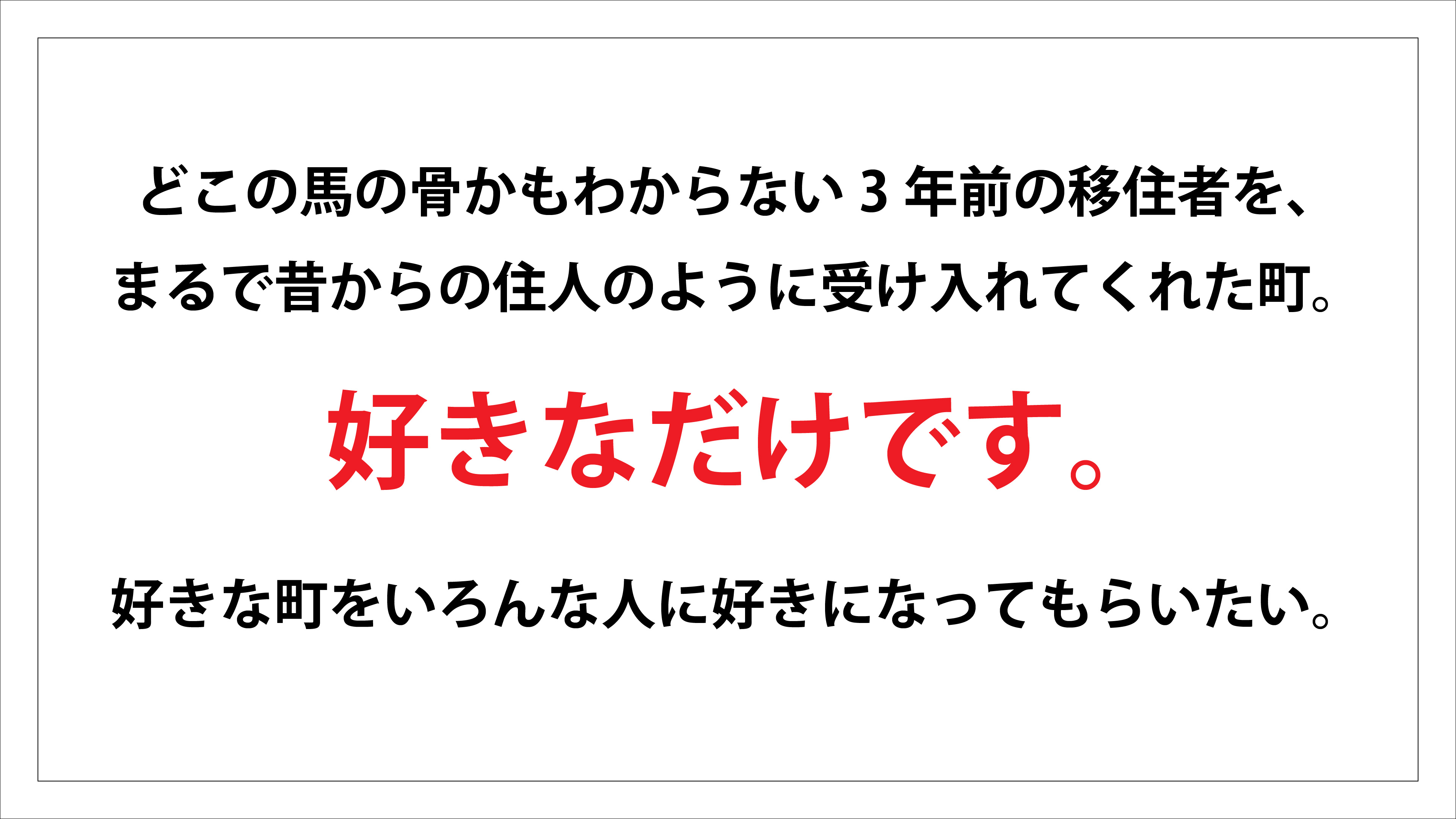 どこの馬の骨かもわからない3年前の移住者を、まるで昔からの住人のように受け入れてくれた町。