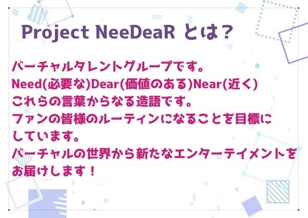 ご期待に沿えるように今後もファンの皆様のご意見等を受け取りつつ、皆様のルーティンになるグループとして活動して参りますのでProject NeeDeaRを何卒宜しくお願い致します。