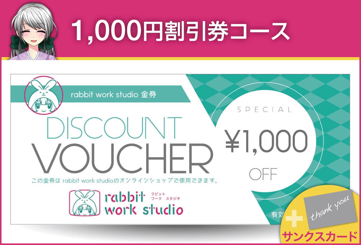 ・(リターン1) オンラインショップ( rabbit work studio )で使える1,000円割引券