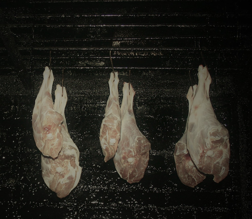 先日、白南風さんに発送した子イノシシの骨付きモモ肉でサンプル品の製造をしています。