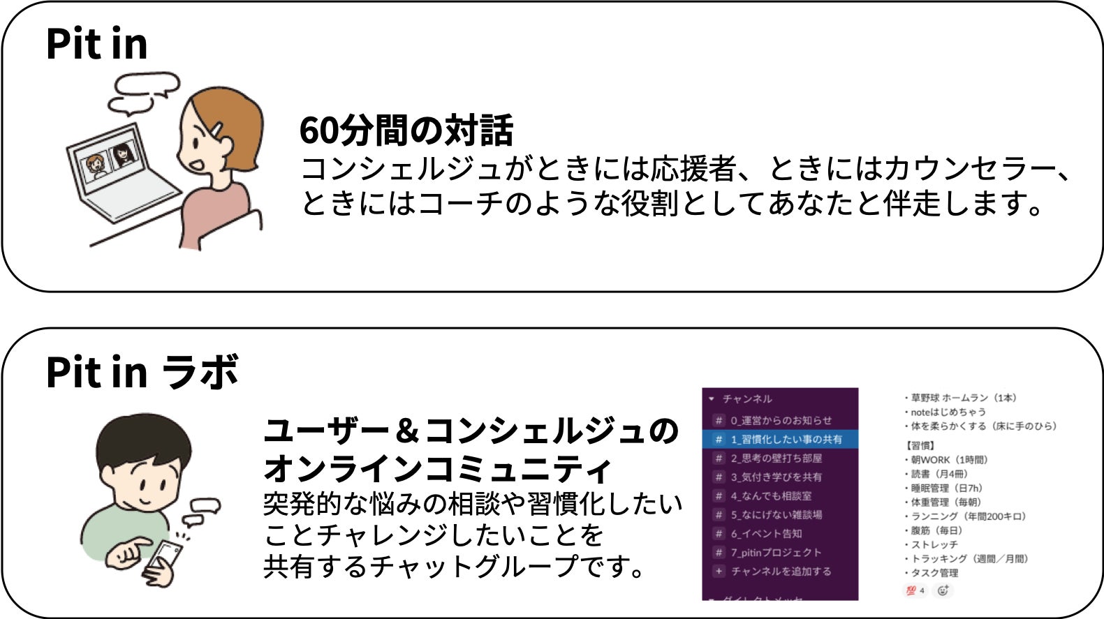 Pit inは継続的に頭と心を整理する、オンライン1on1サービスです。
