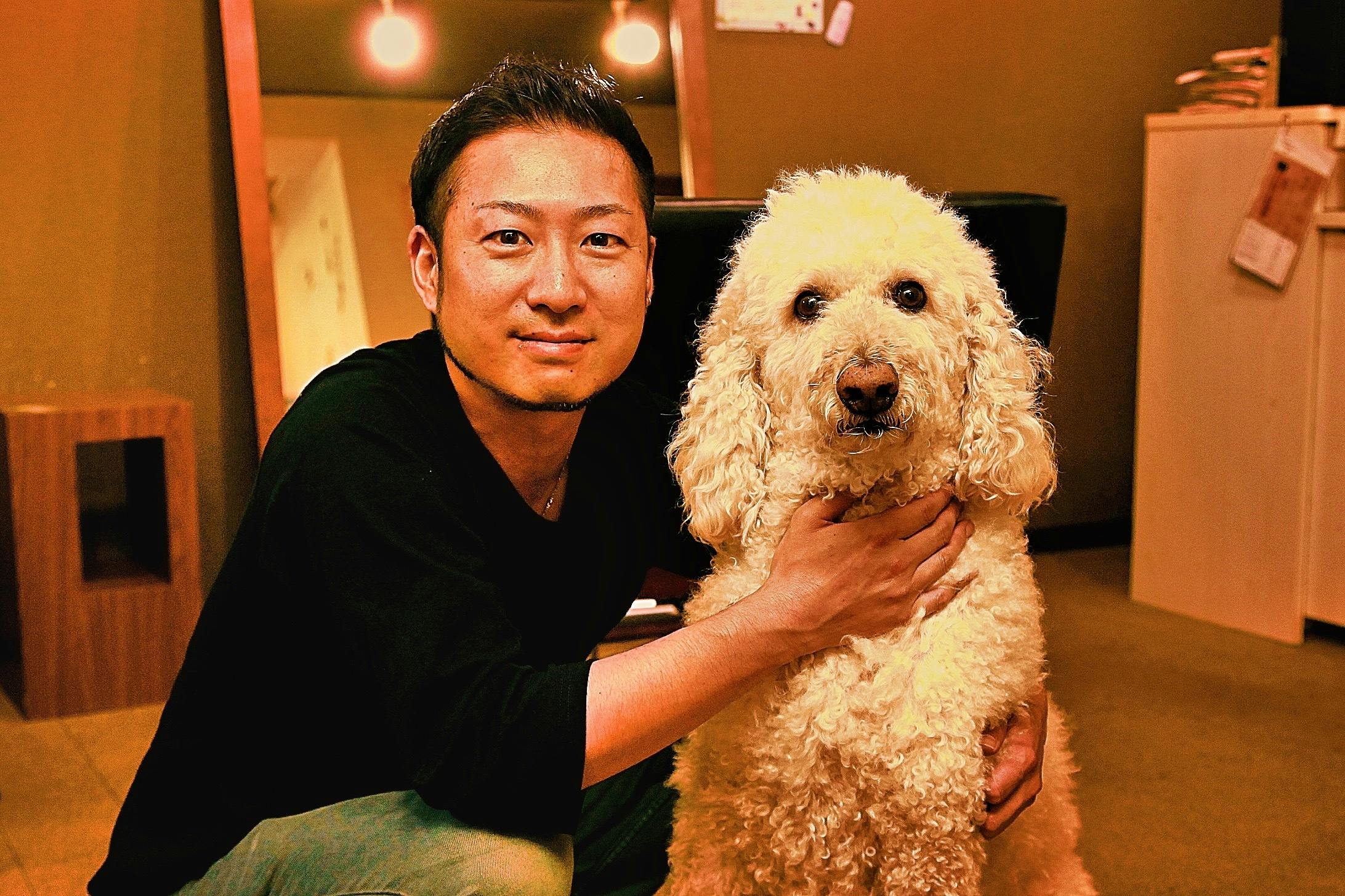 私は、下鳥綾介シモトリリョウスケと申します。右側に居るのが、相棒のアフロです、スタンダードプードルの雄。年齢は推定9歳です。私は北海道札幌市で美容室をやっております。アフロはそこで看板犬として、お客様の癒し担当として働いておりました笑。