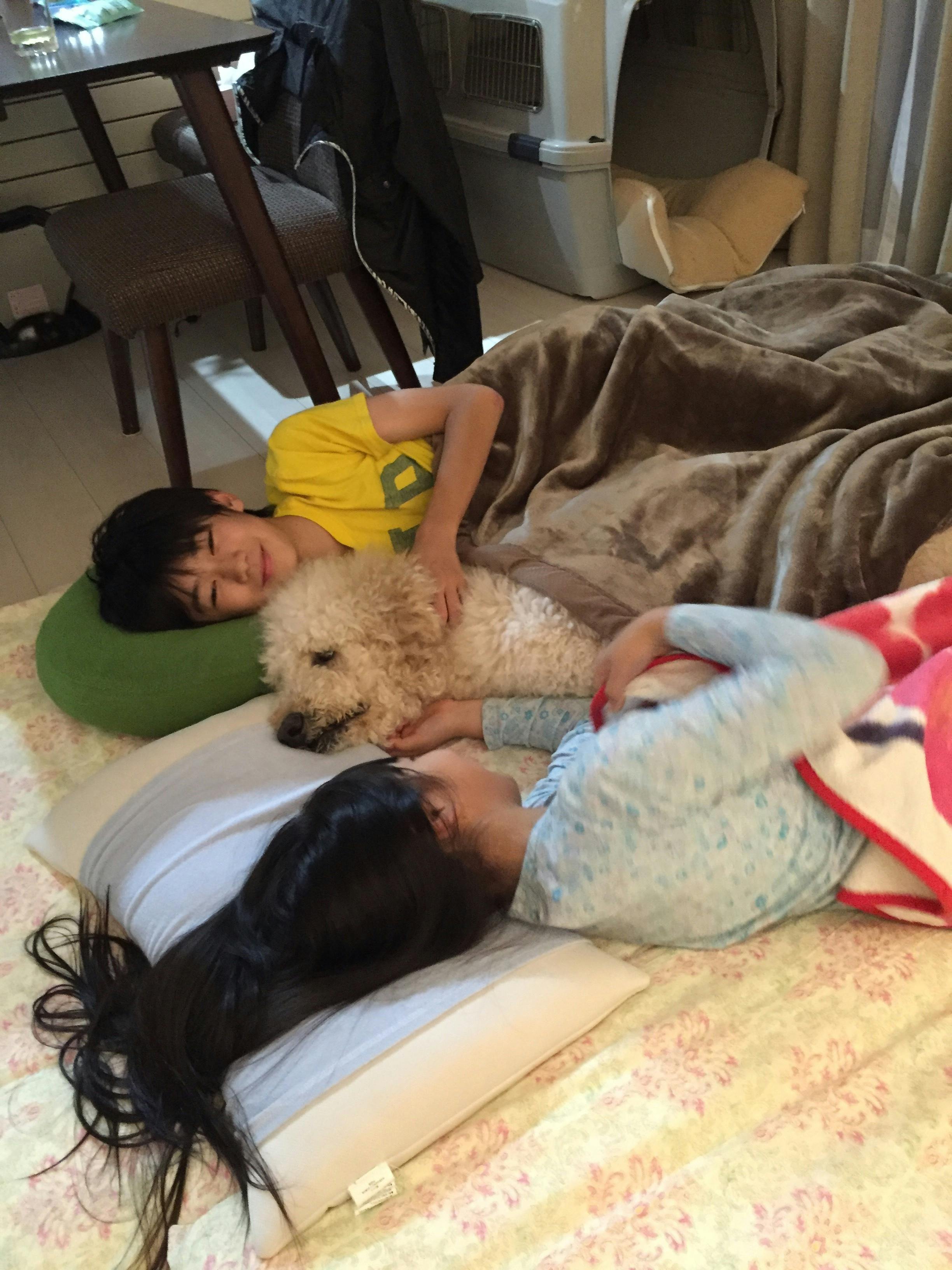 👆ワンちゃんの不安をなくす為、居間で雑魚寝してみました。笑(本人撮影)