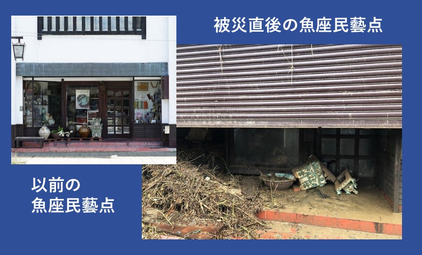 しかし、令和2年7月4日の豪雨で、魚座は店舗の2階床上70㎝まで浸水し、1階は天井が落ちて、壊滅的な状態となりました。先のことなどまるで考えられないでおりましたが、全国の皆さまから沢山の温かいお言葉を頂き、再度魚座を復活させる決意をいたしました。