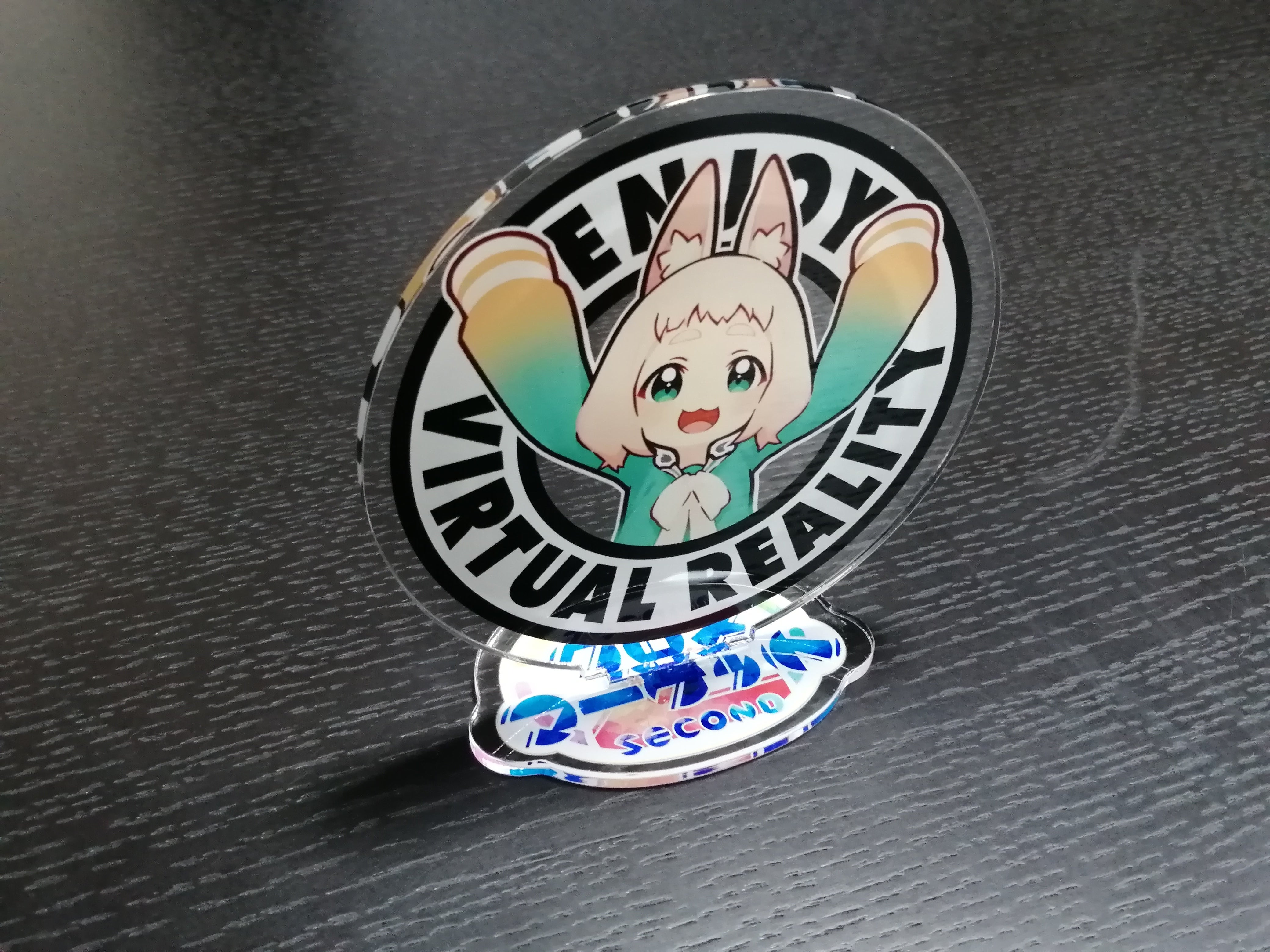 台紙サイズ125×180mmでアクリルスタンドフィギュアです。アクリルスタンドフィギュア用に調整してあります。製品組み立て時同様の3Dデータが付いてきますので、ワールドに飾るもよし、アバターにしてバーチャルの世界を駆け巡るもよし。