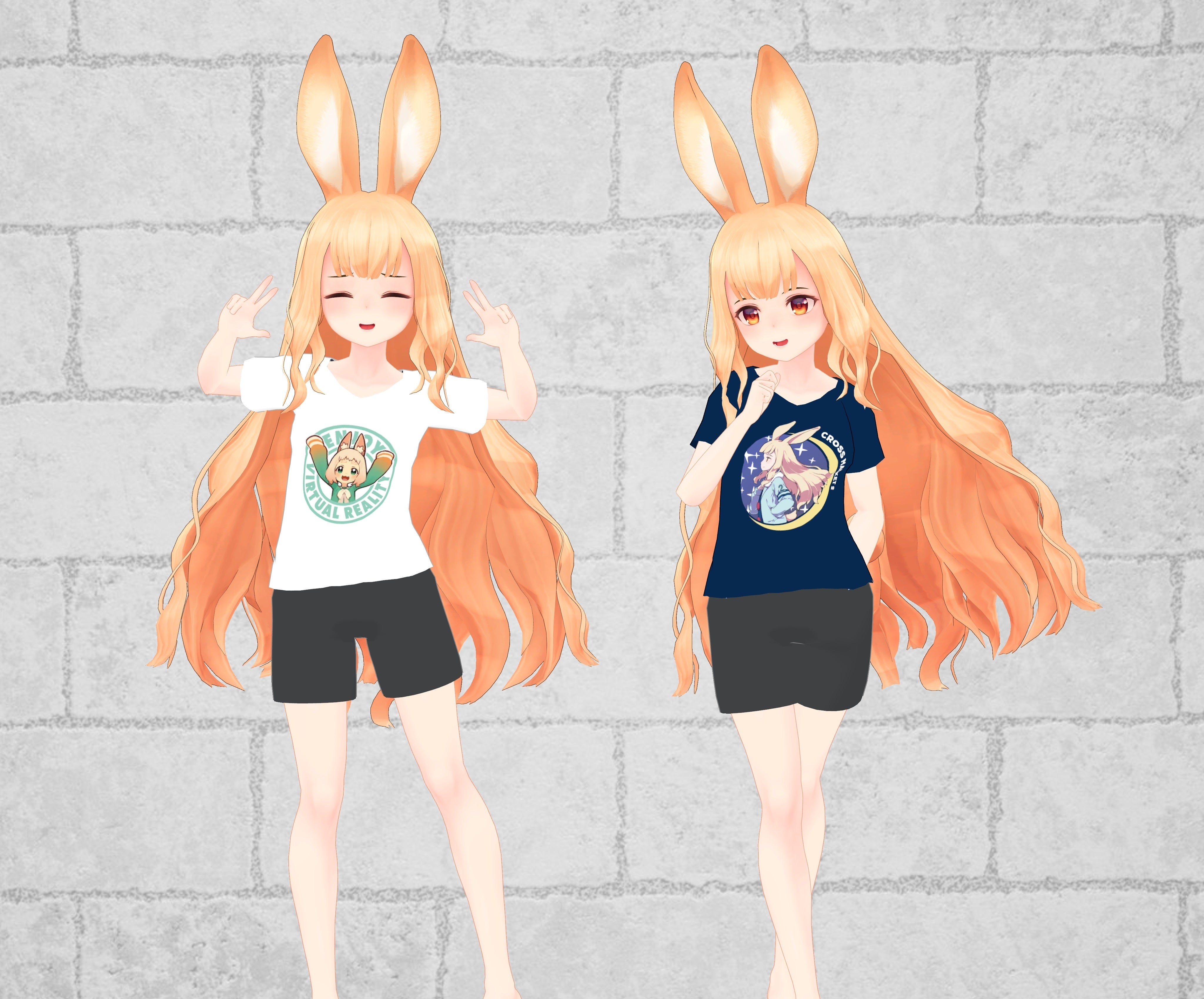 原作者様から許可をいただけたのでTシャツに使われたみみのちゃんとロポリこんちゃんのpngファイルを配布いたします!ワンポイントの改変などにお使い頂けます。(画像は改変例です)