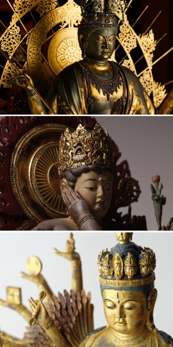 平和と希望を祈った時代を思い出させる国宝や重要文化財の数々、千手観音像、阿修羅像、毘沙門天像、不動明王像、大日如来像などを忠実に再現。