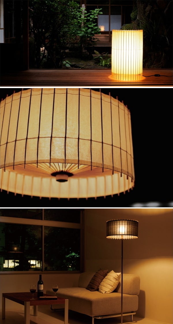 「和傘照明(京都5代の伝統と革新 日吉屋」が織りなす情景。