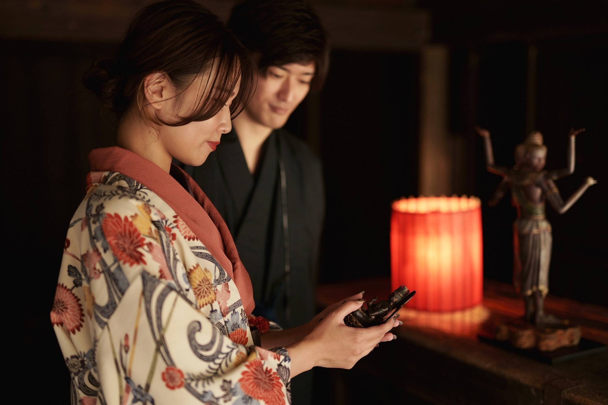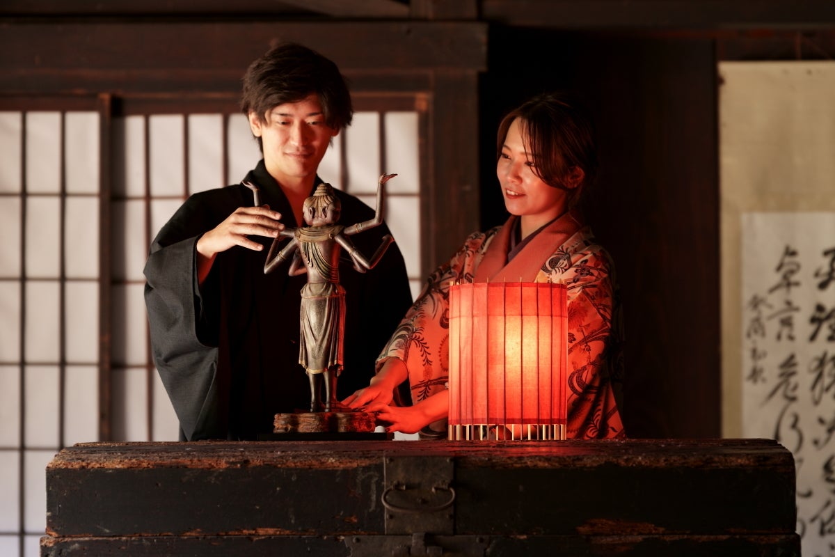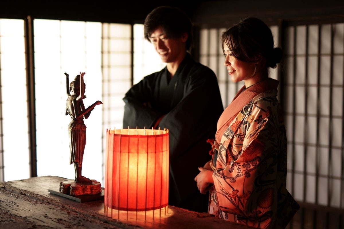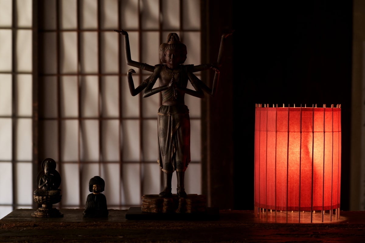 忠実に再現されたハイクオリティーな仏像と、伝統を革新させる和傘照明との融合が、どのような表情を生み出すのか。是非、現地でお愉しみください。
