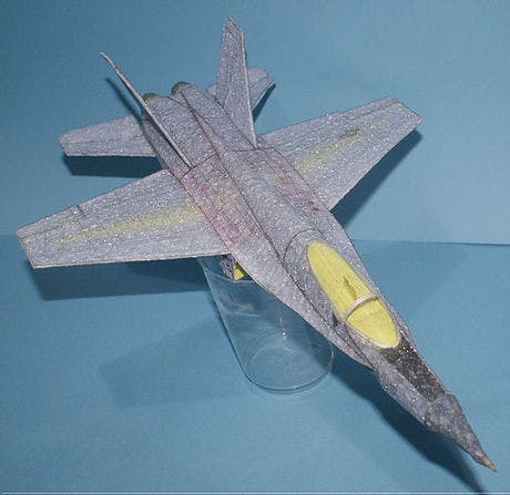 折角模型飛行機をつくるなら、カッコいい方がいい、その思いで、ジェット戦闘機をモチーフにしました